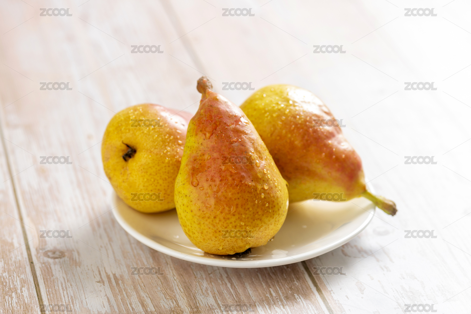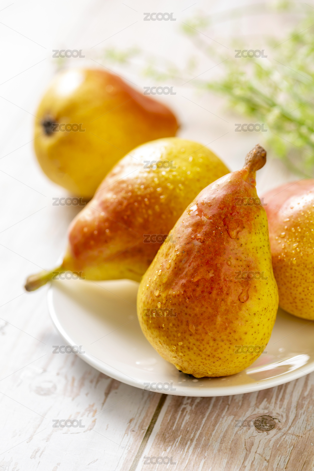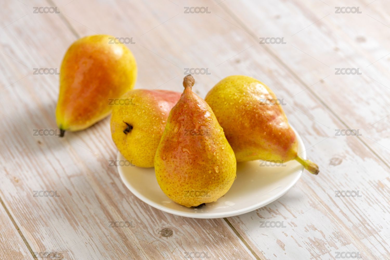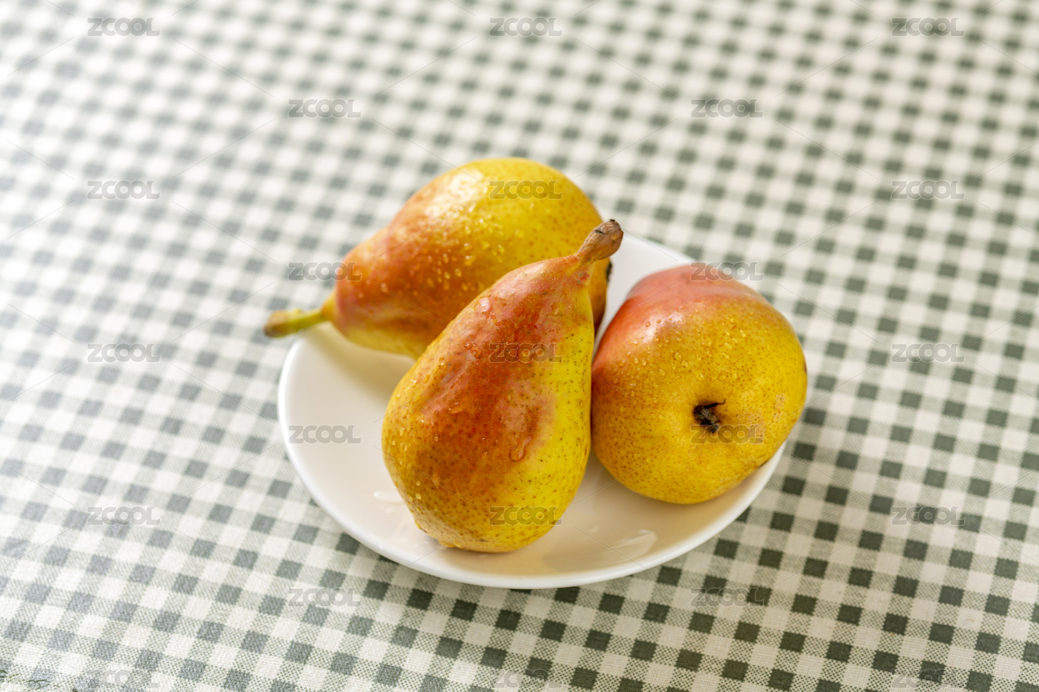 煙臺梨擺放在格子桌布木桌面上