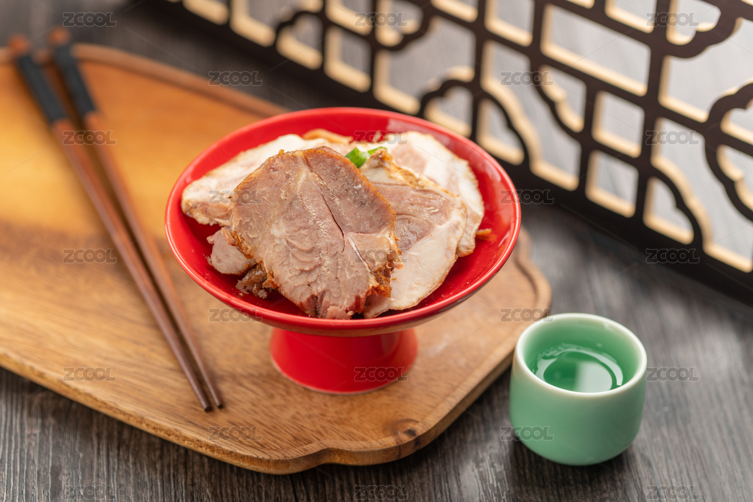 冬季補品醬羊肉特寫古窗欞木桌面