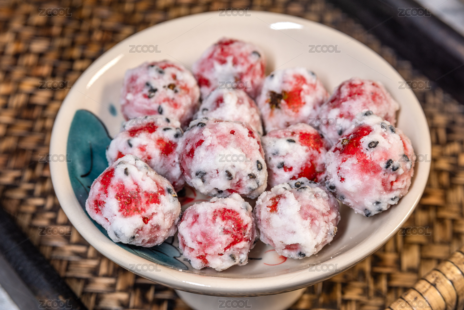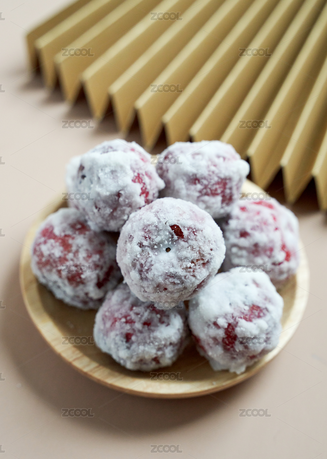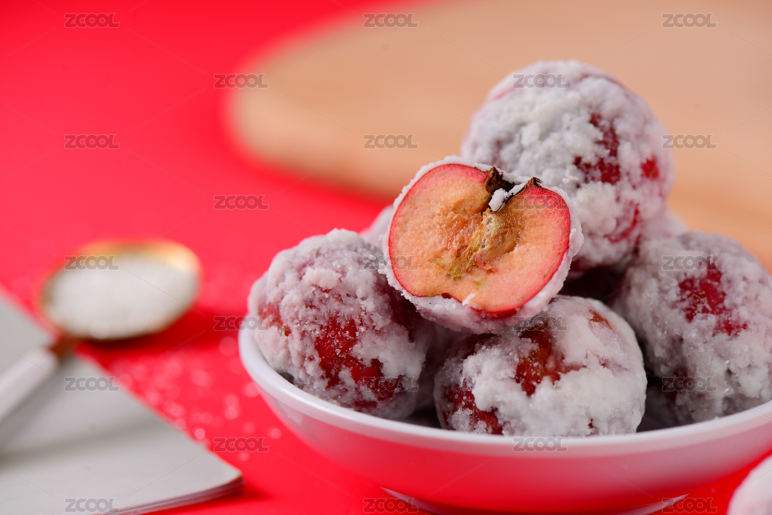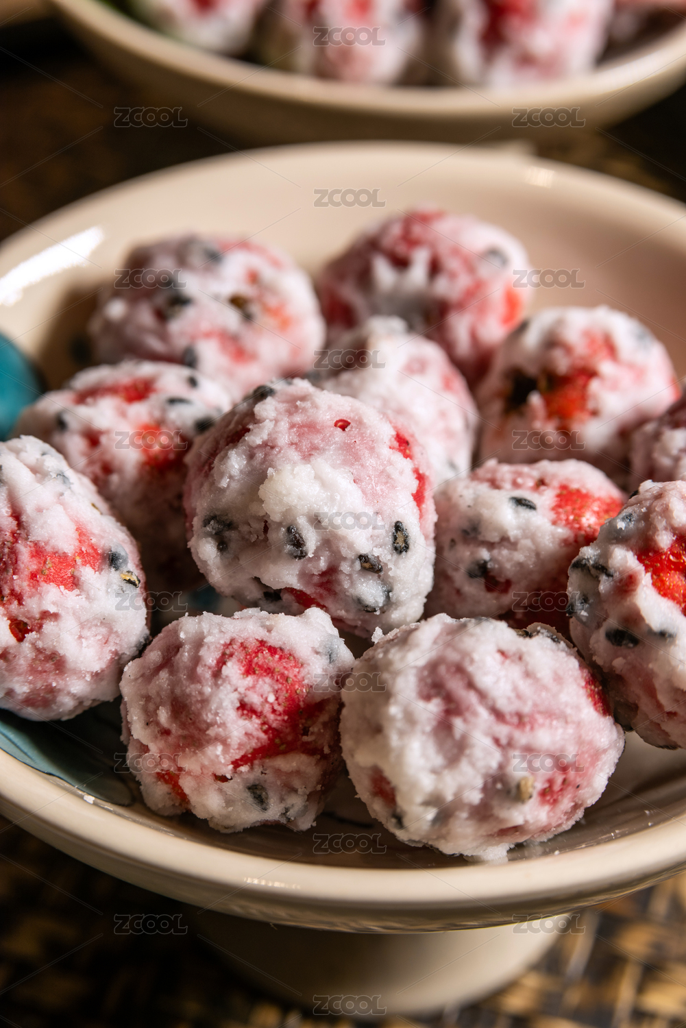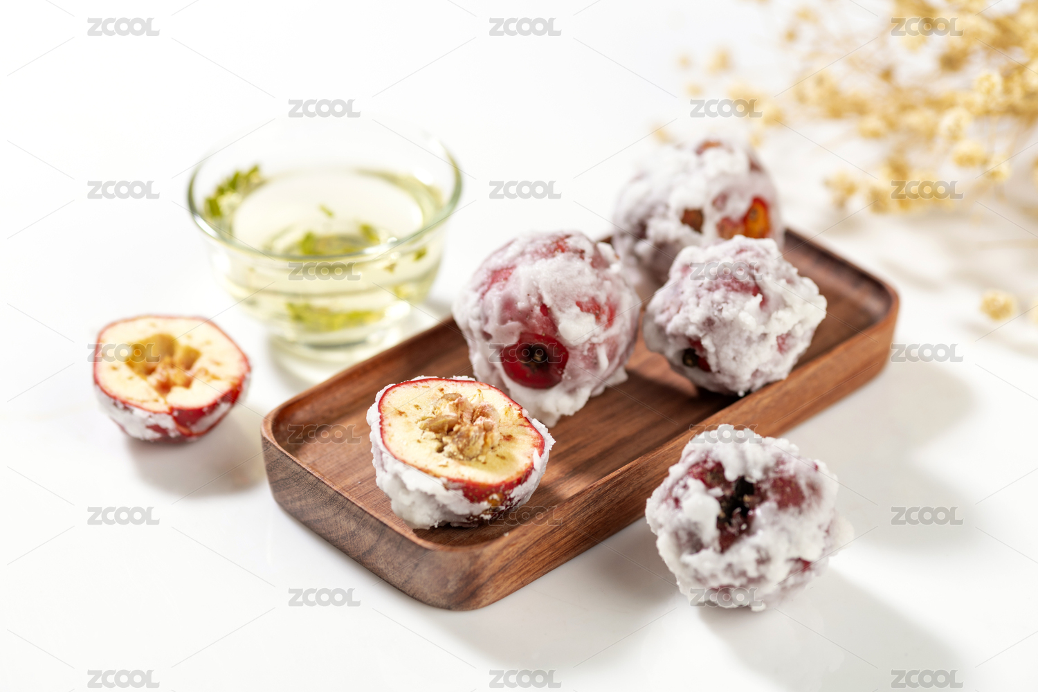 糖雪球糖炒山楂糖球果糖粘子特寫白色背景