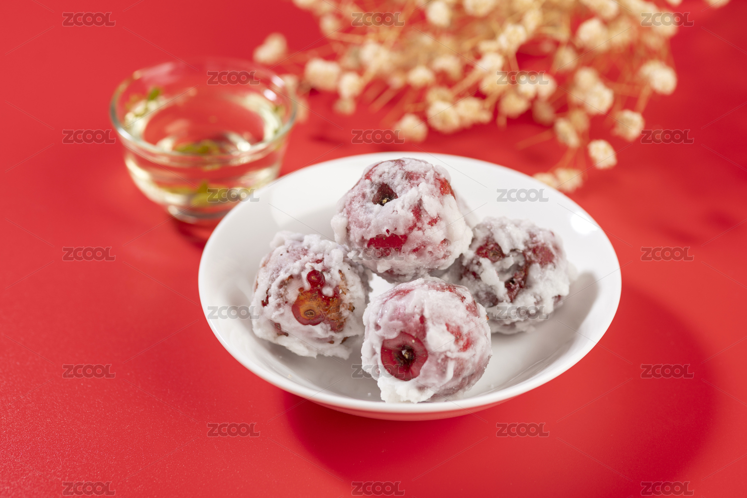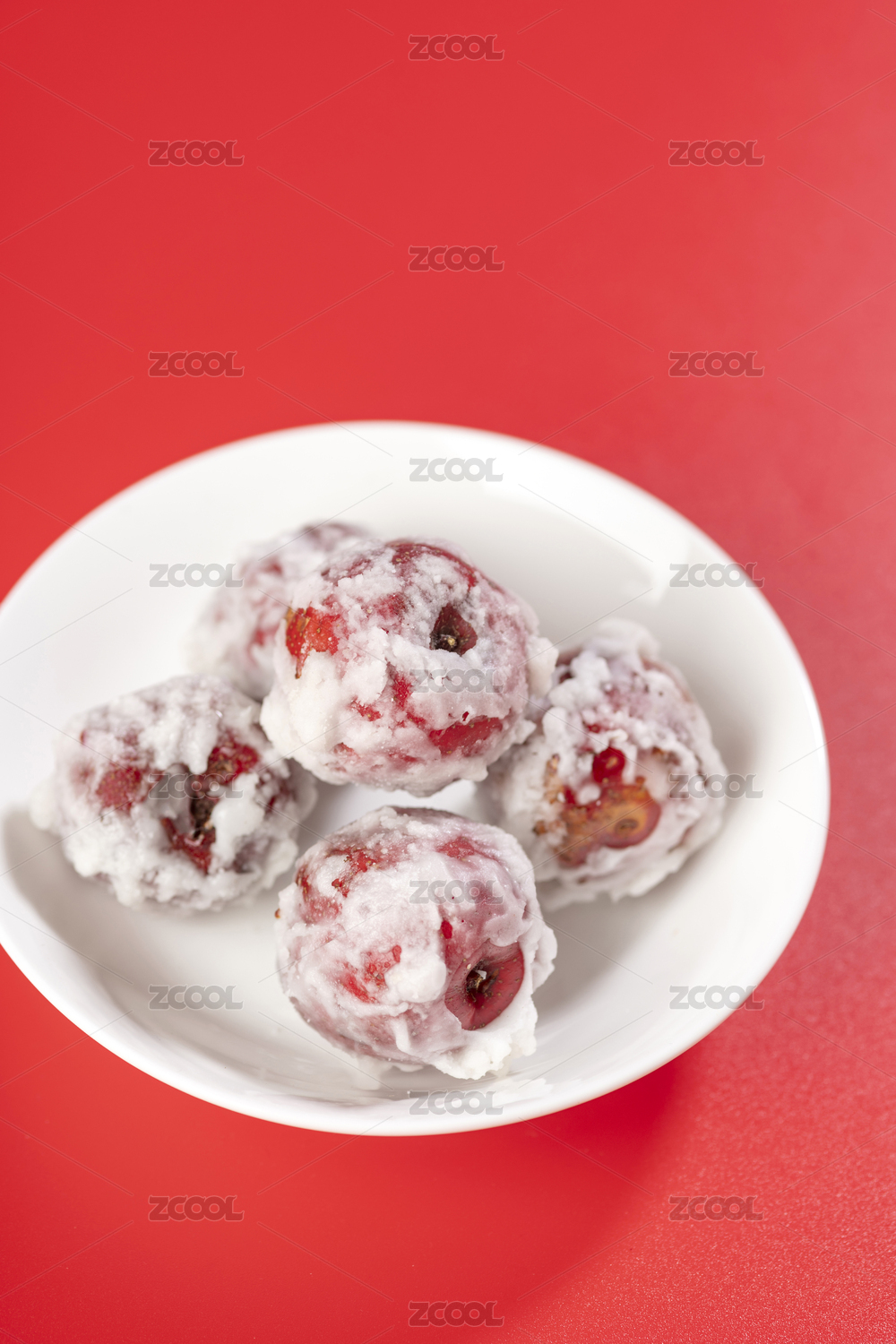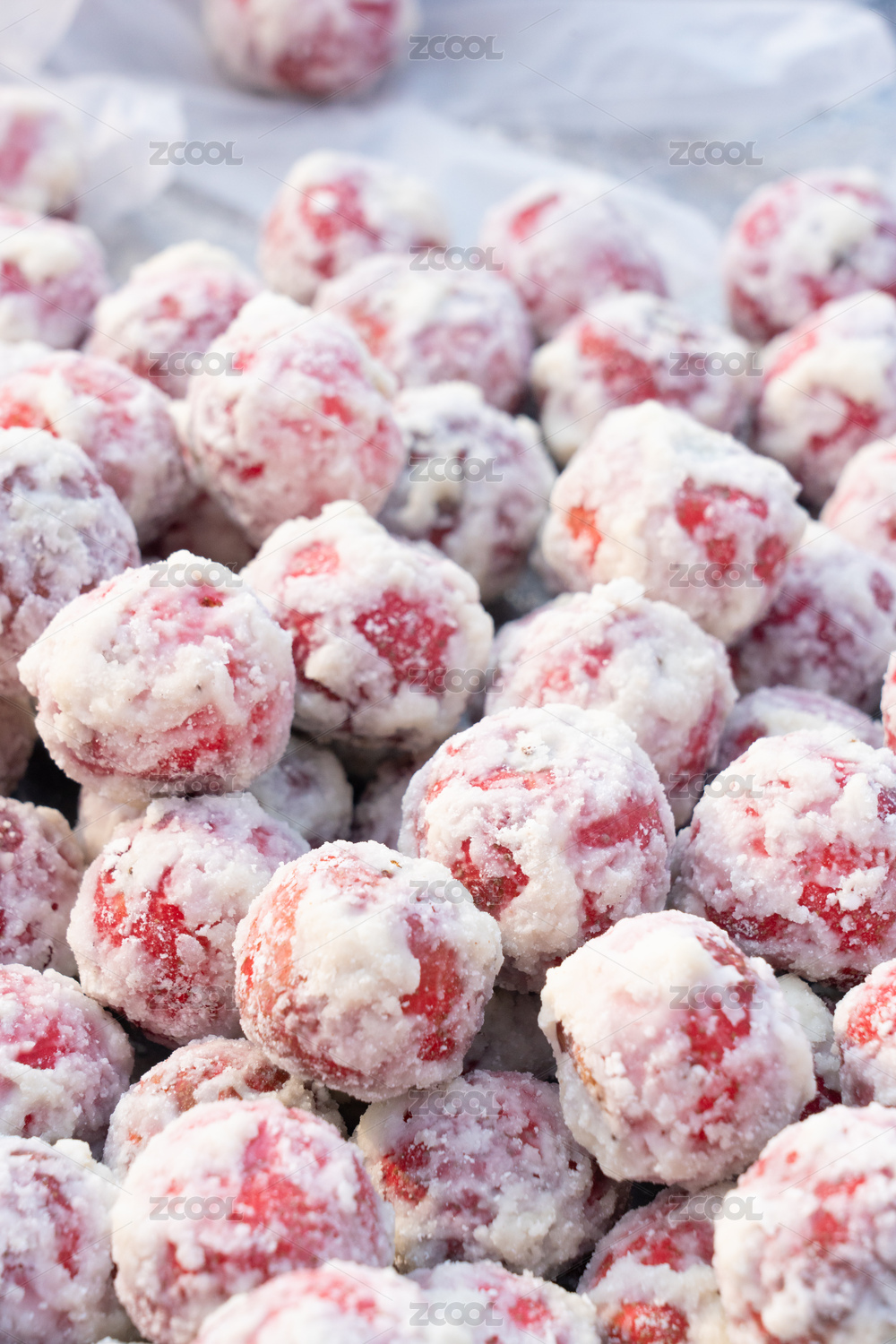 糖山楂糖炒山楂糖雪球糖粘子特寫紅色背景
