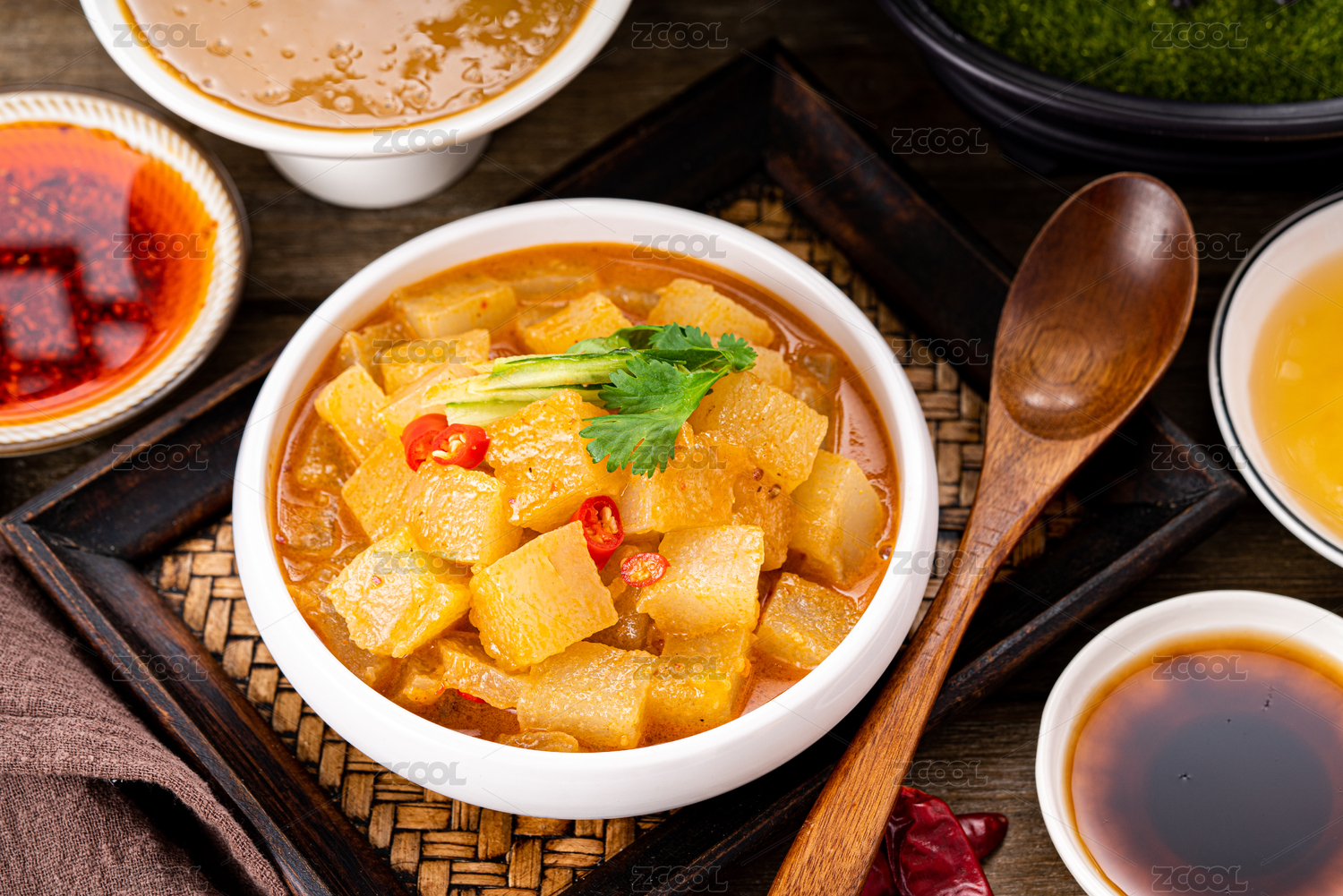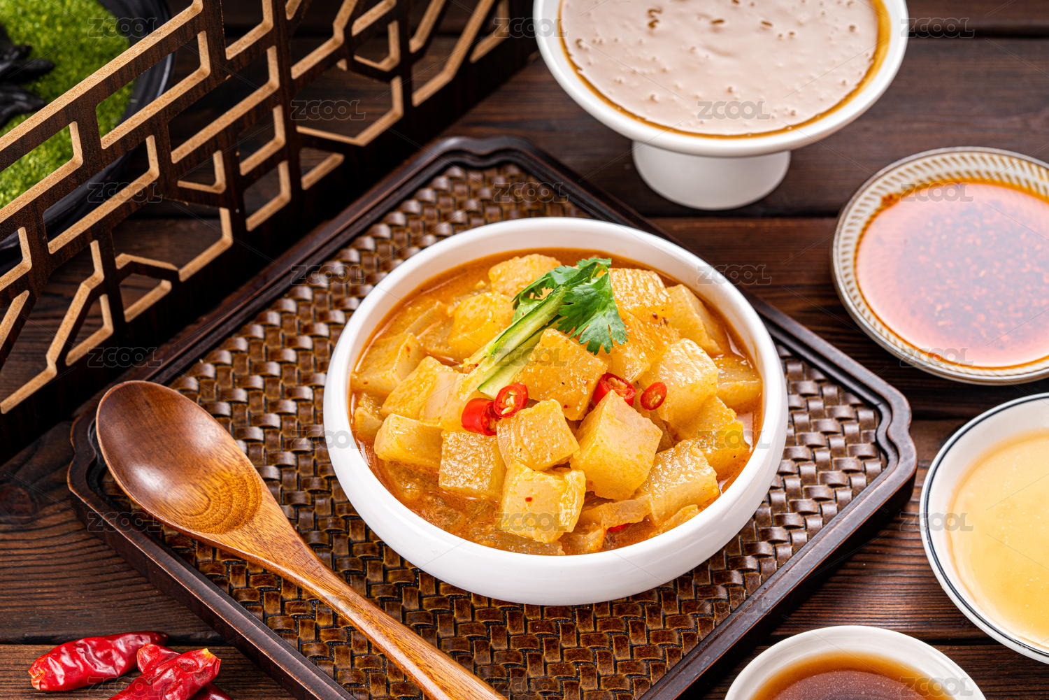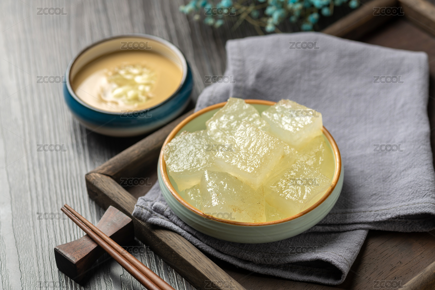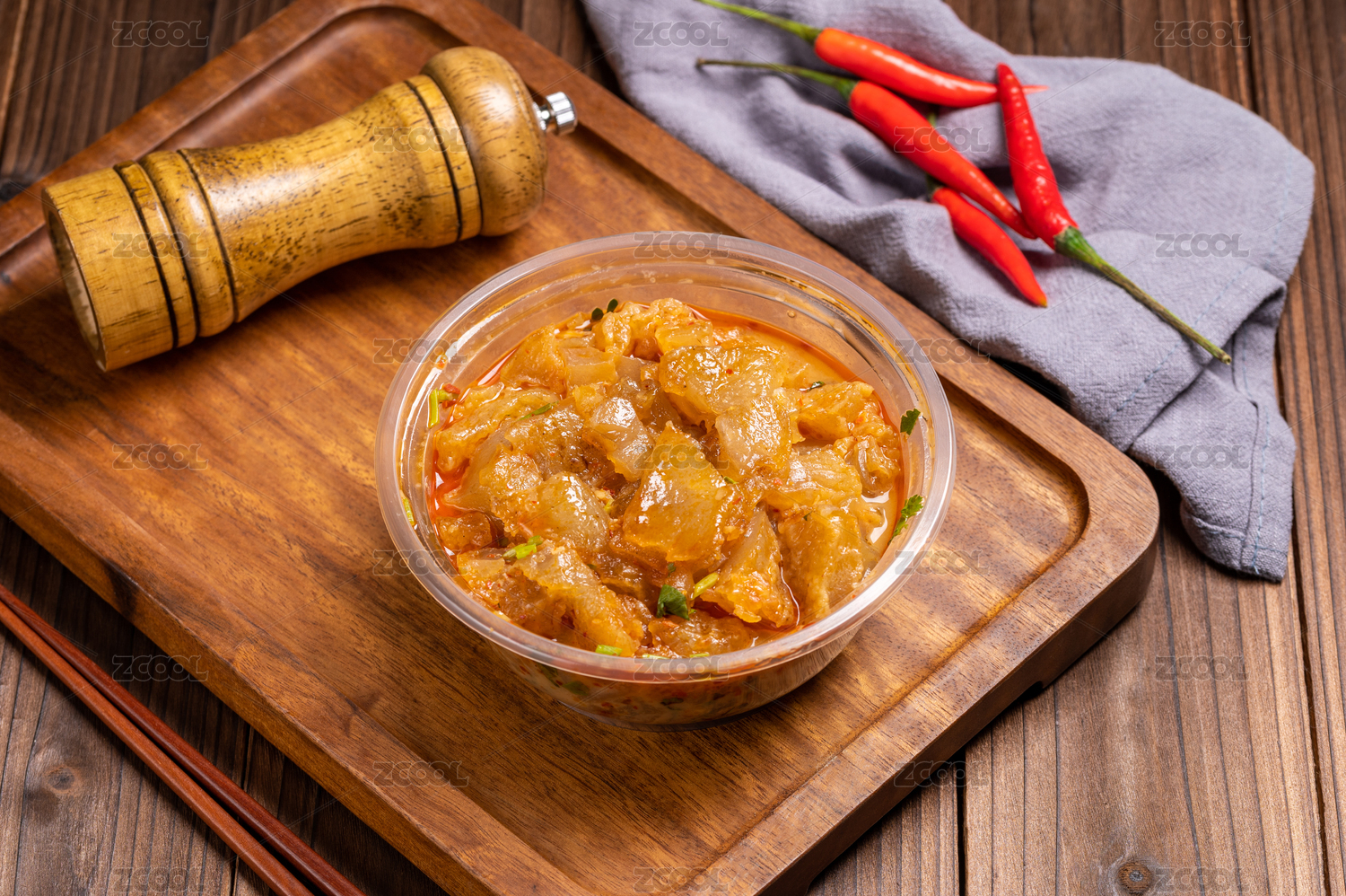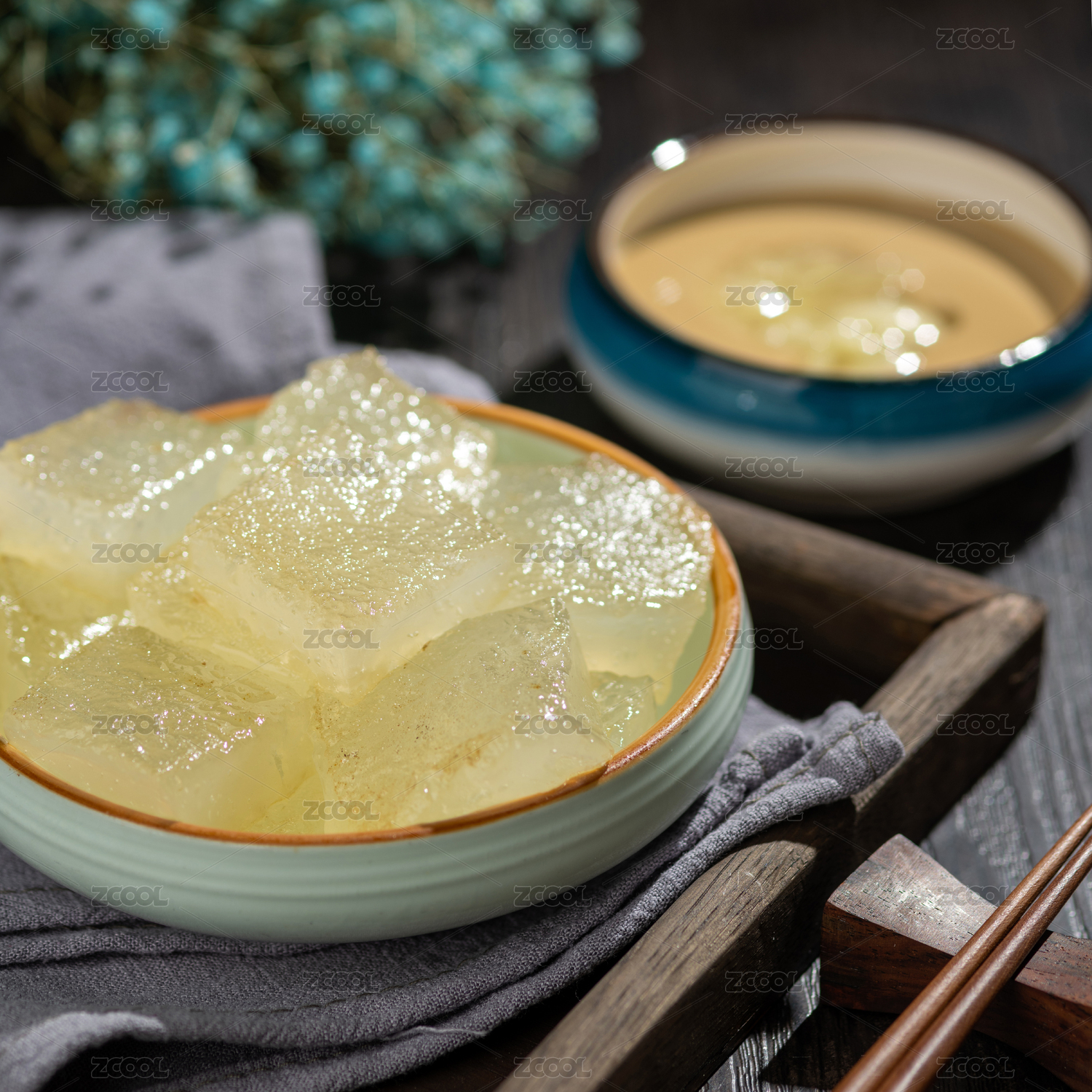天津傳統(tǒng)小吃煎燜子特寫木桌面深色調(diào)
