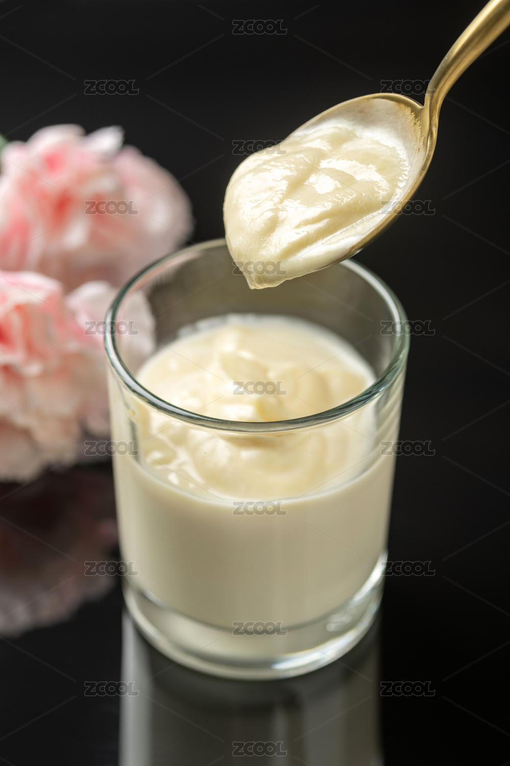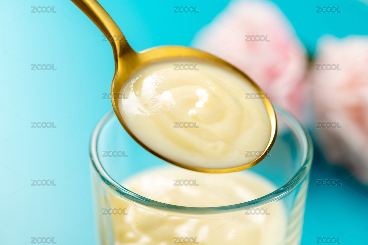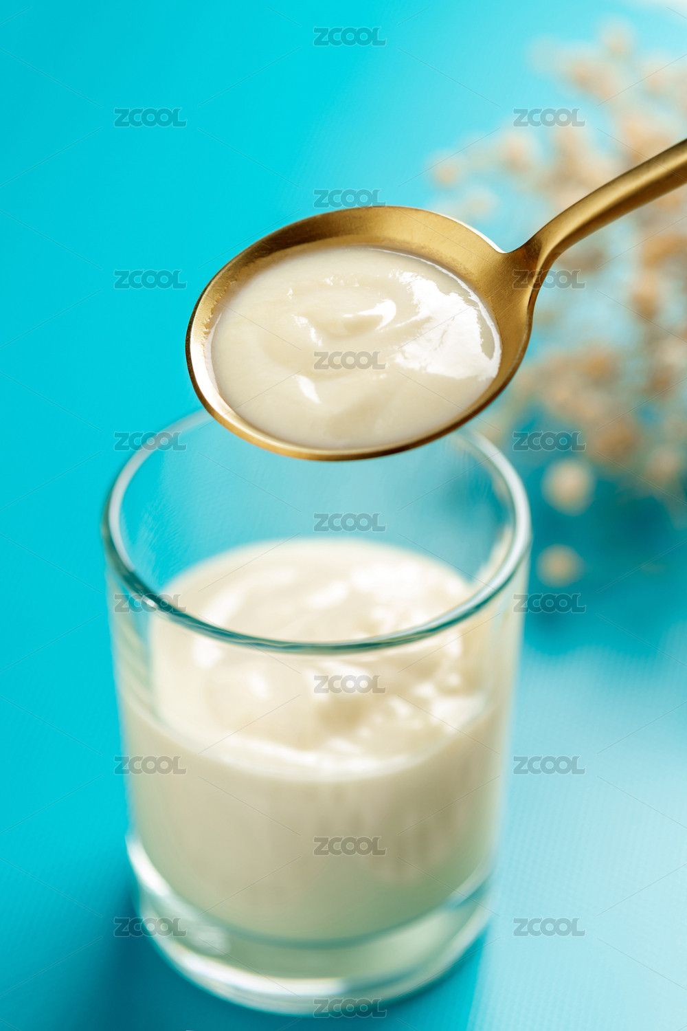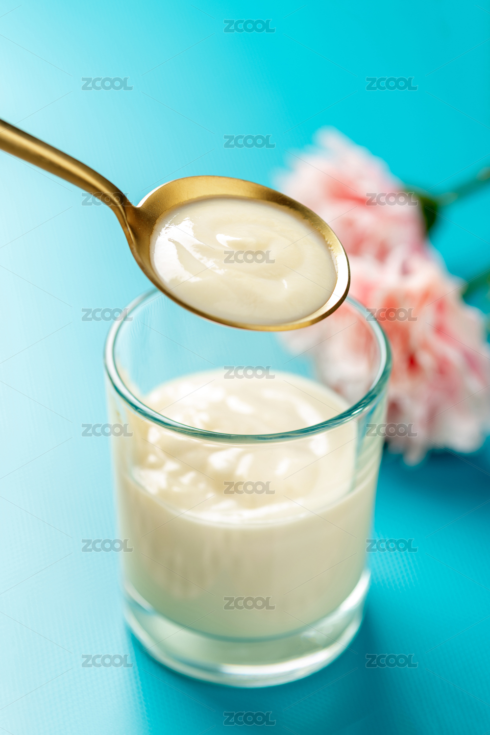 勺盛酸奶特寫藍(lán)色莫蘭迪色系背景