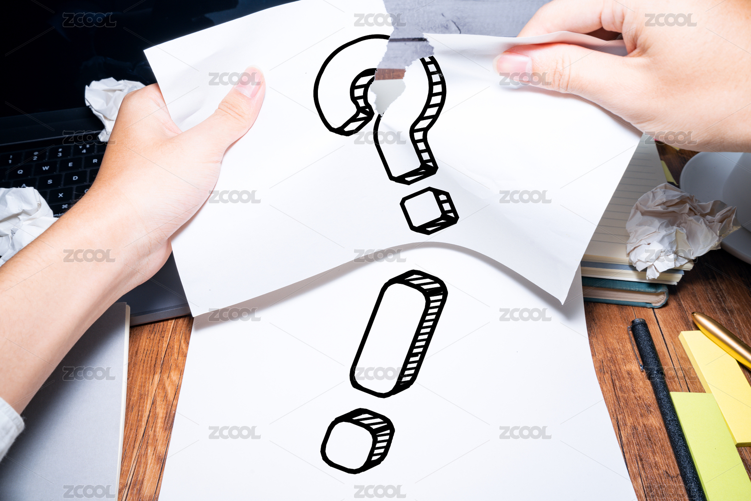 商務(wù)人士撕掉問(wèn)號(hào)留下嘆號(hào)燈泡概念