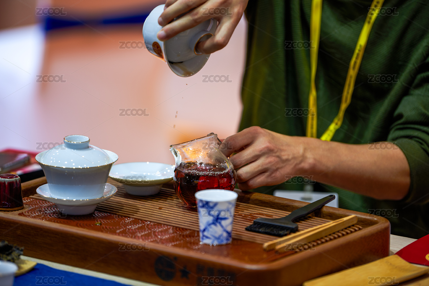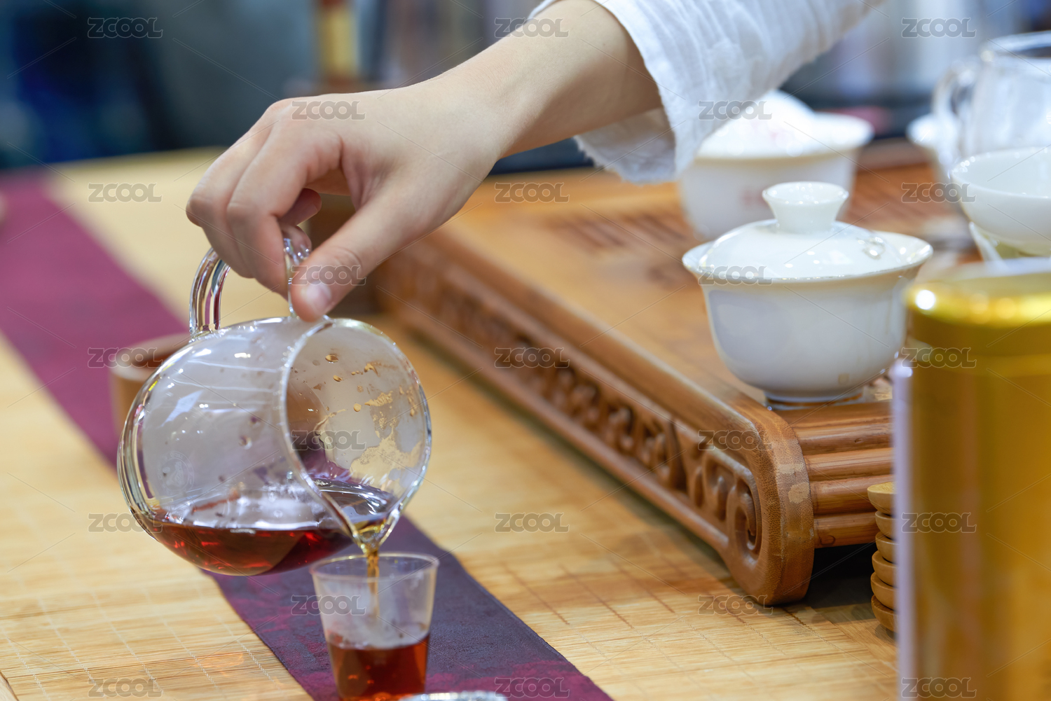 一位茶藝師在給顧客泡茶