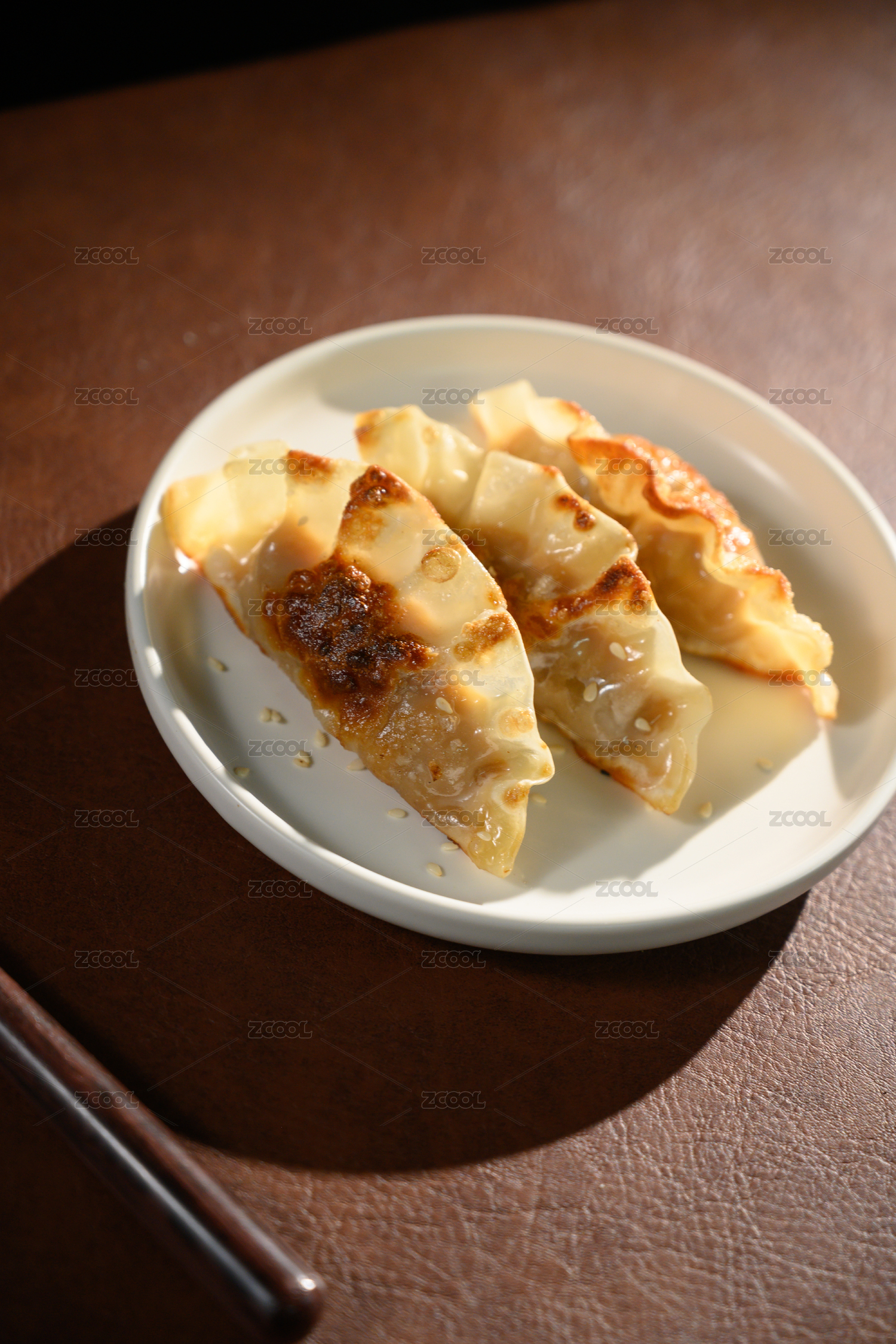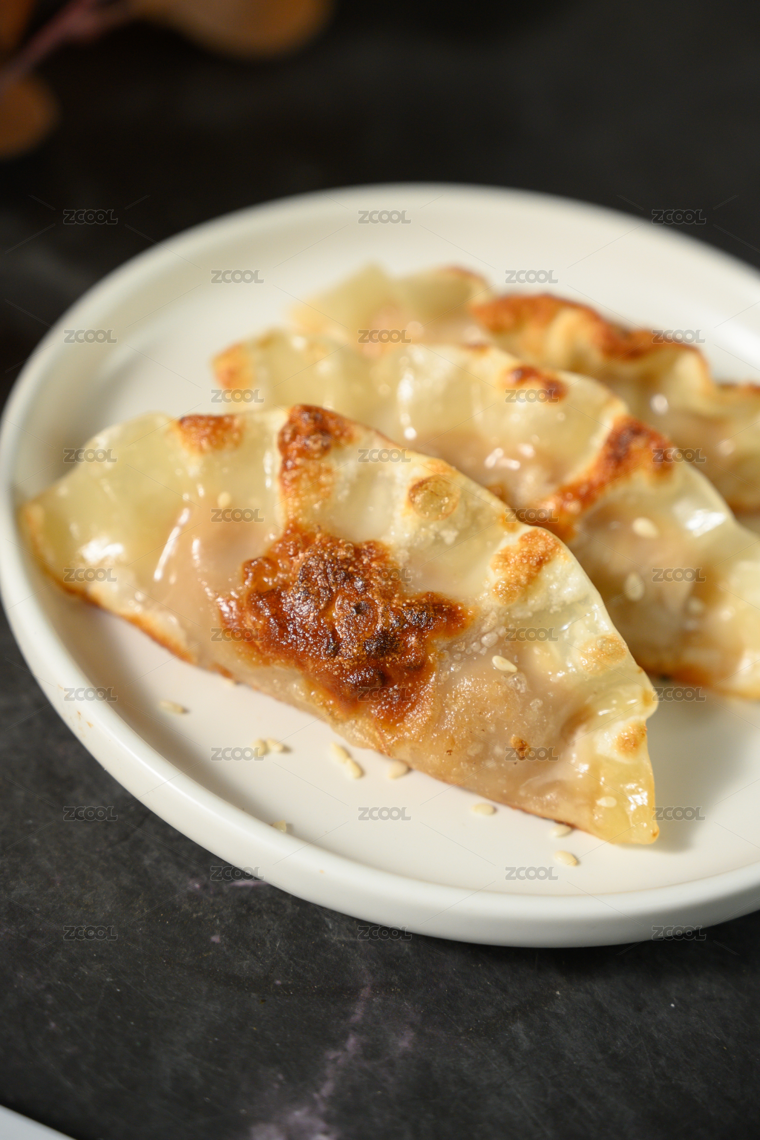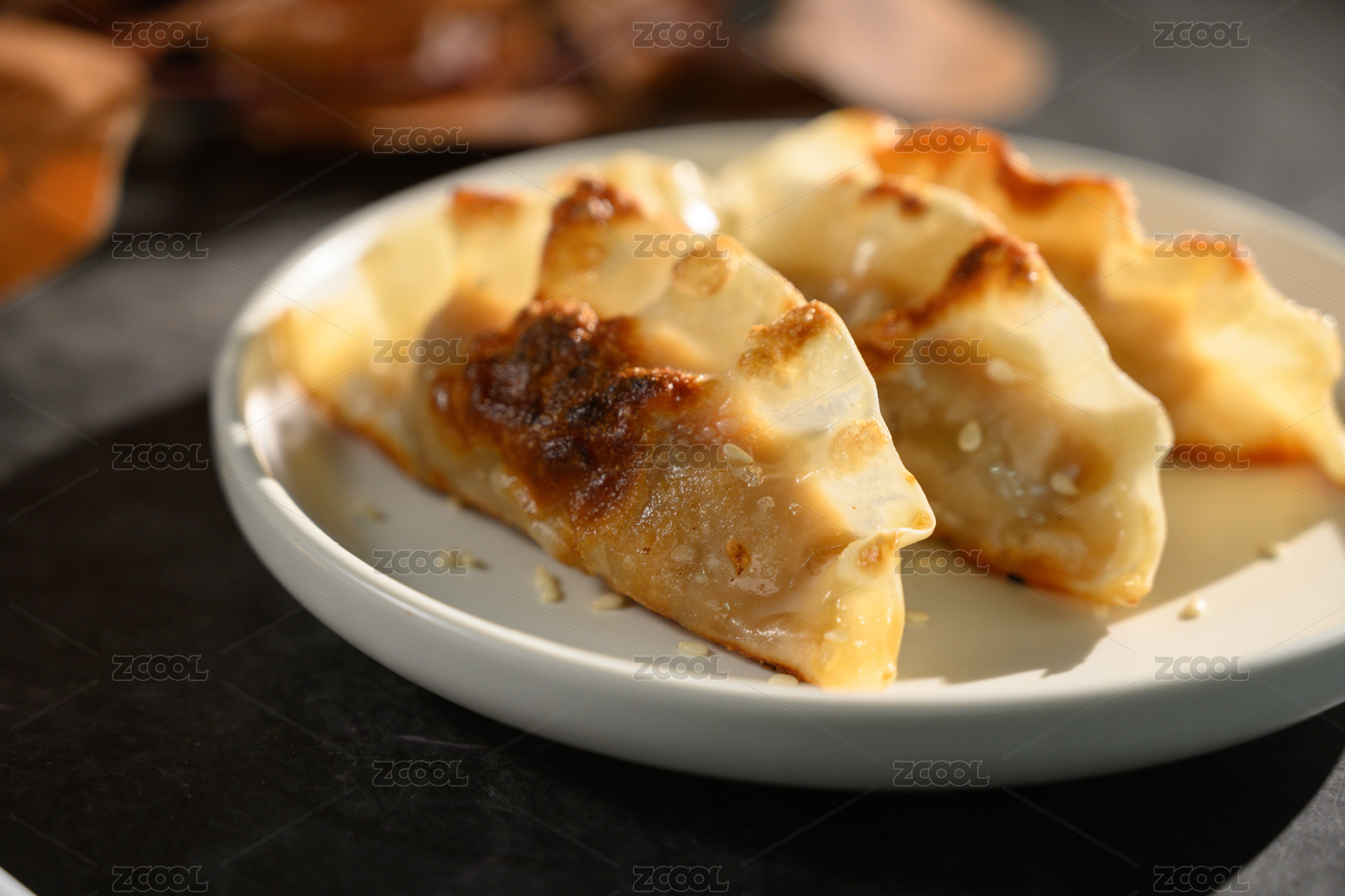 桌面上的盤子里的美味可口的煎餃子