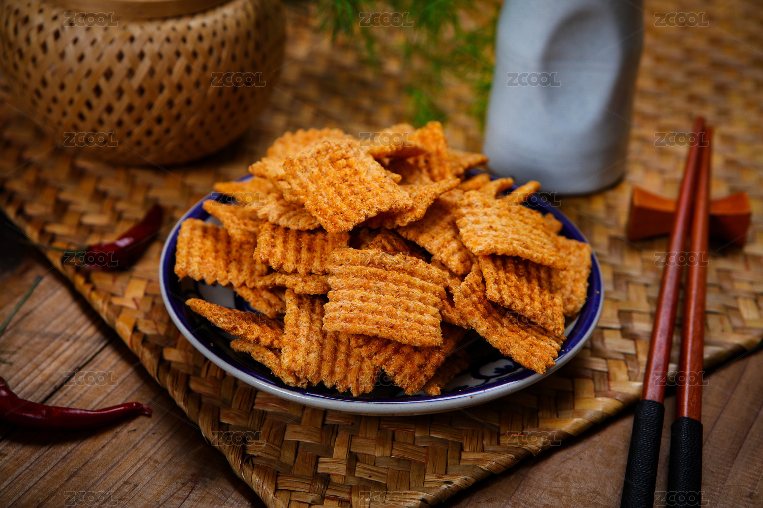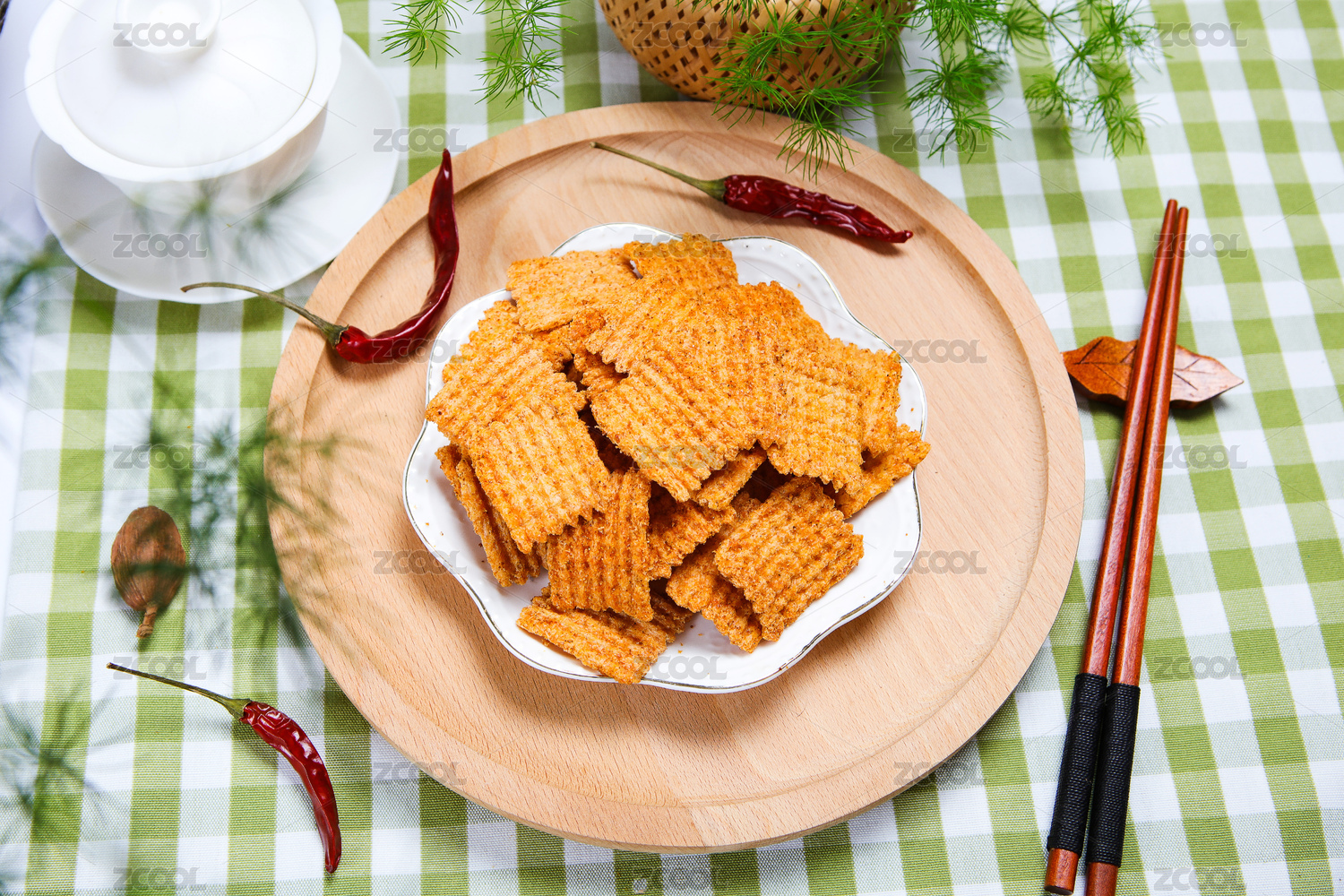 放在碟子里用筷子夾起來的麻辣鍋巴