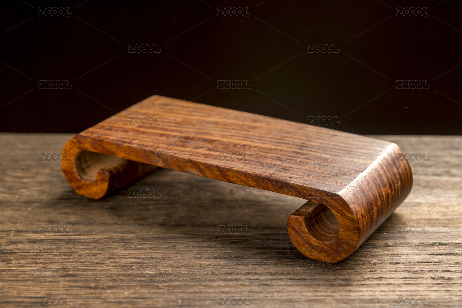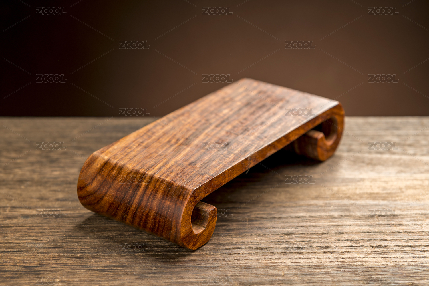 仿古紅木書卷底座木底座擺放在桌面上特寫