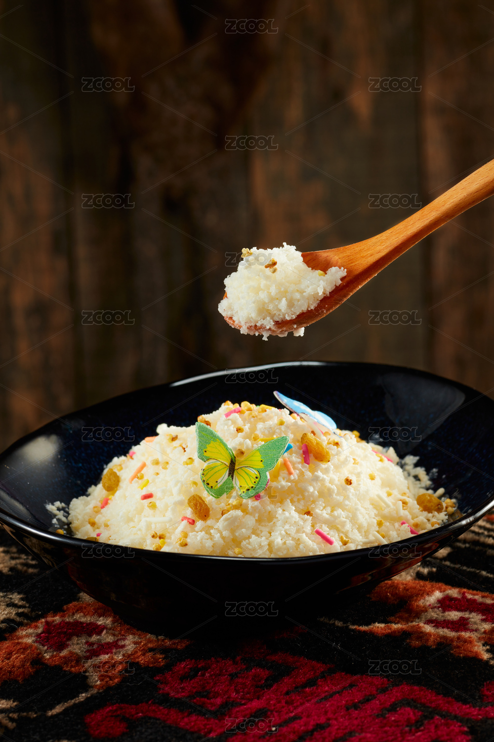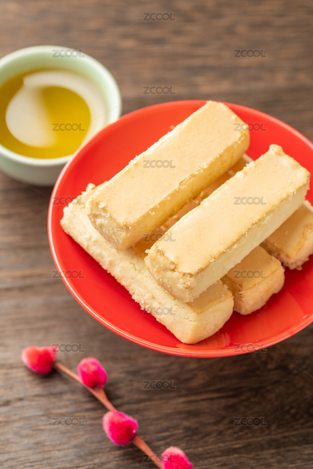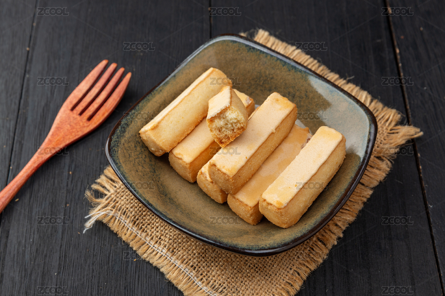 一盤(pán)奶皮酥?jǐn)[放在木桌面上特寫(xiě)