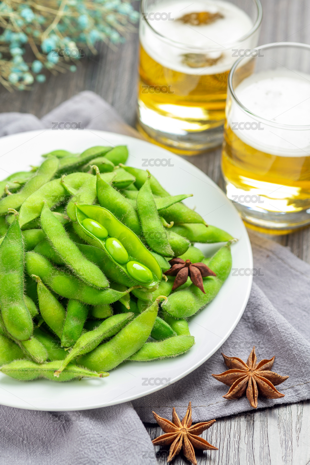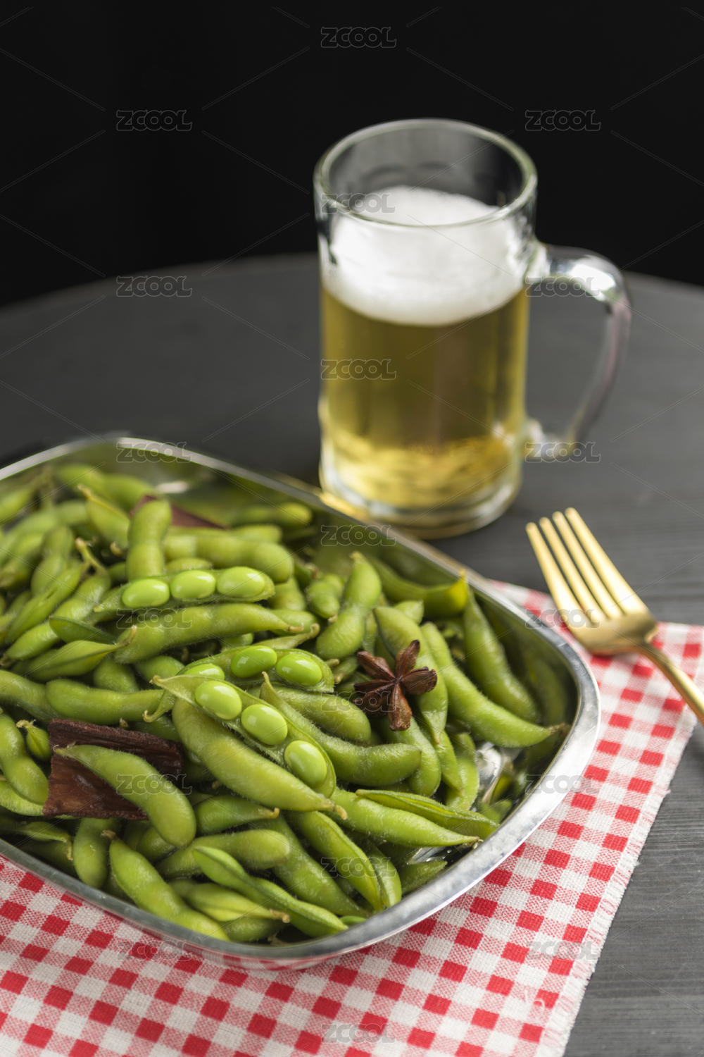 冰鎮(zhèn)啤酒和熟毛豆