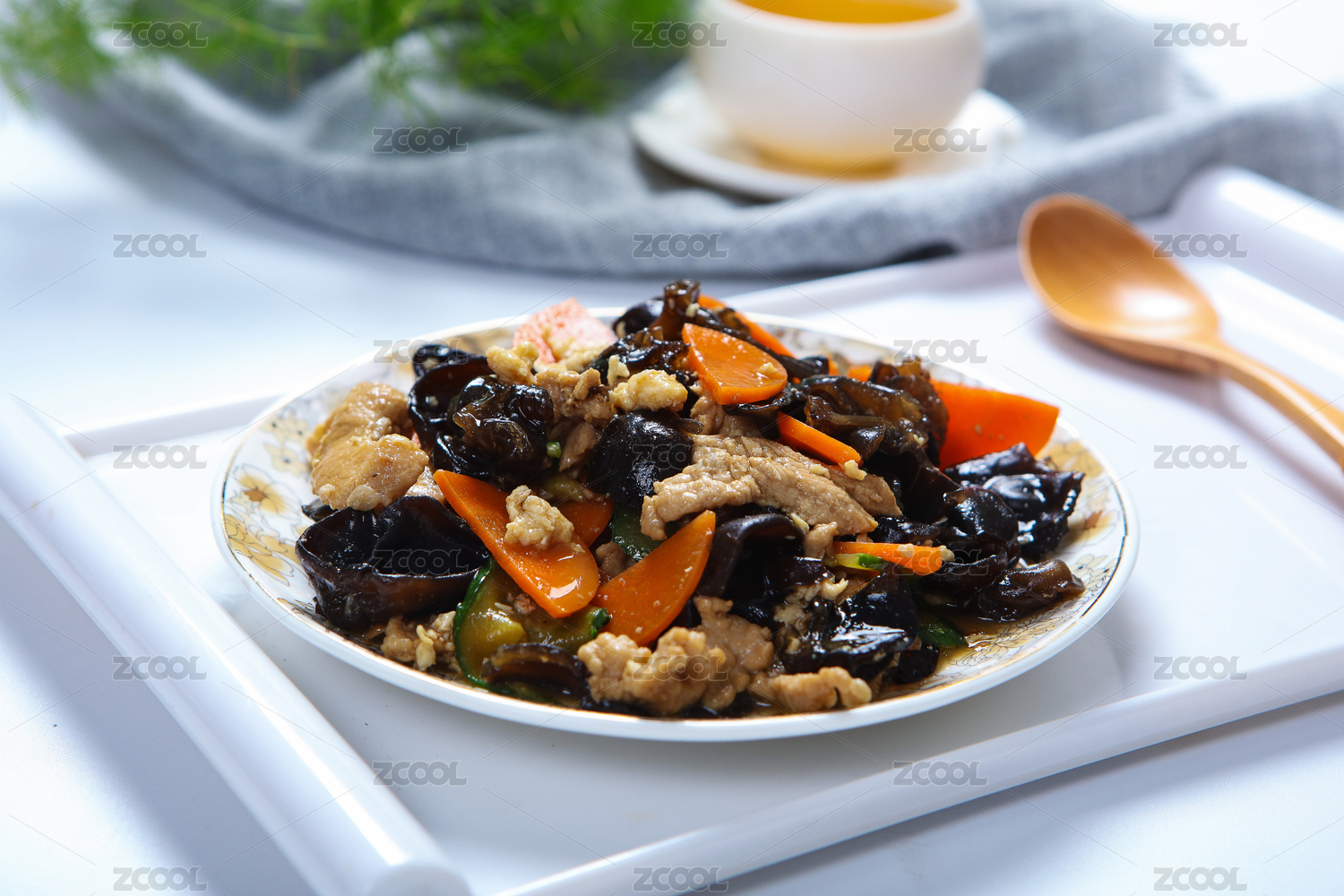 傳統(tǒng)家常炒菜木耳胡蘿卜炒肉片