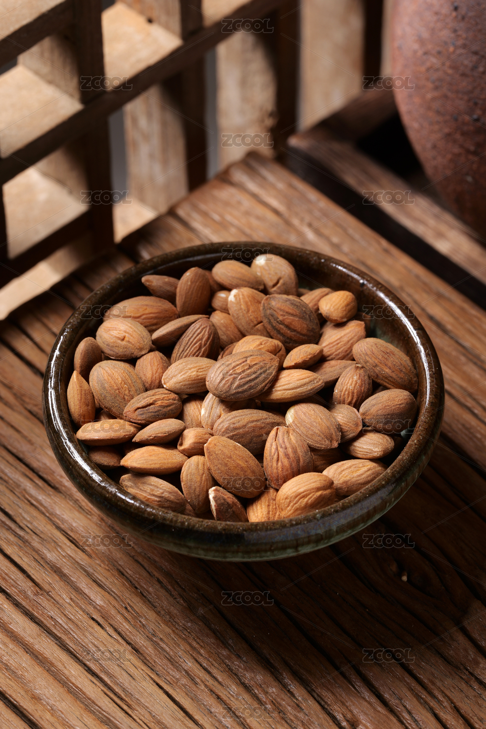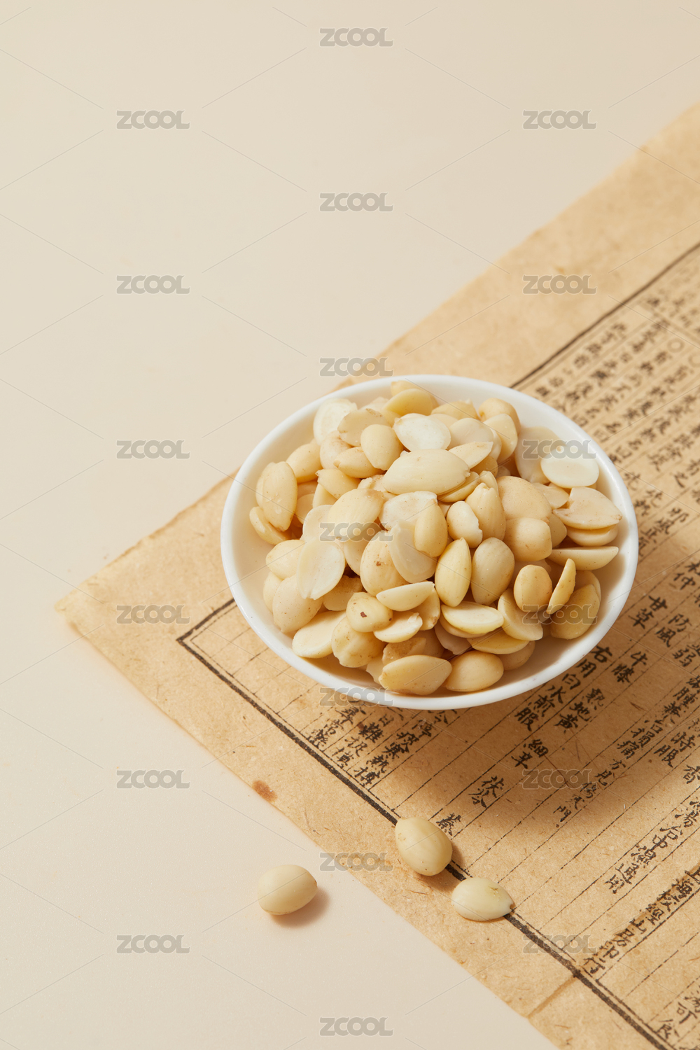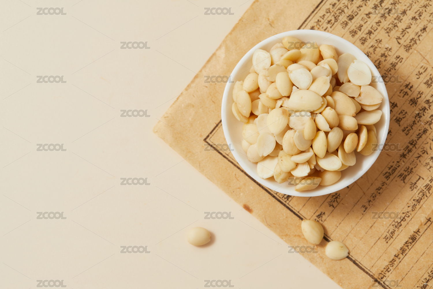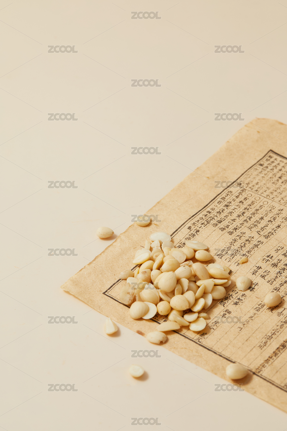 中國古風背景的中藥桃仁特寫