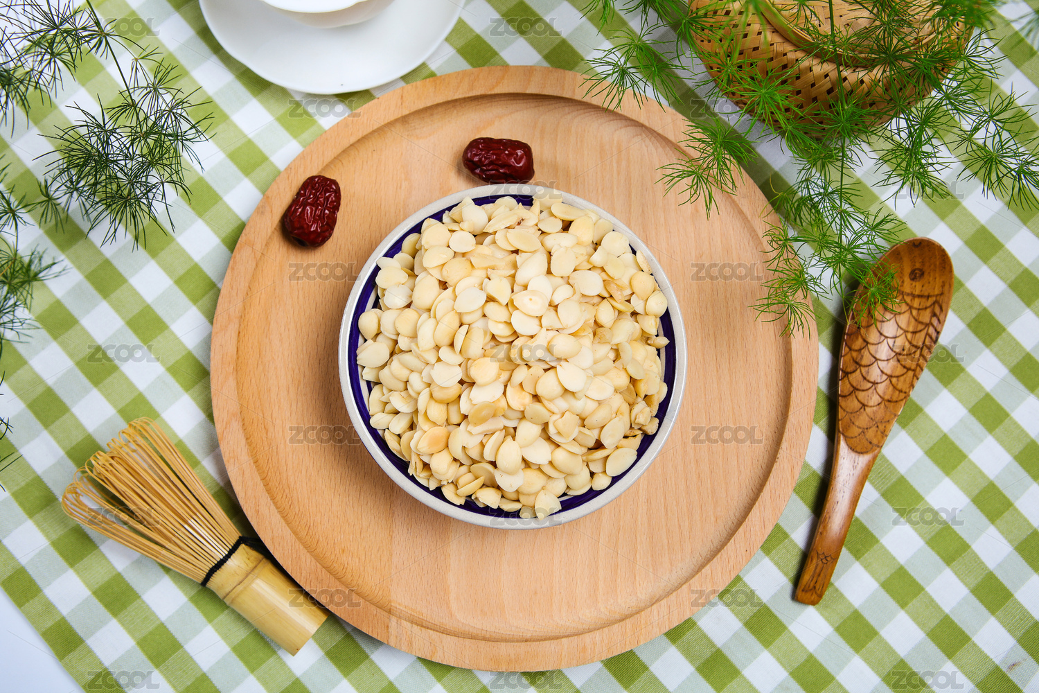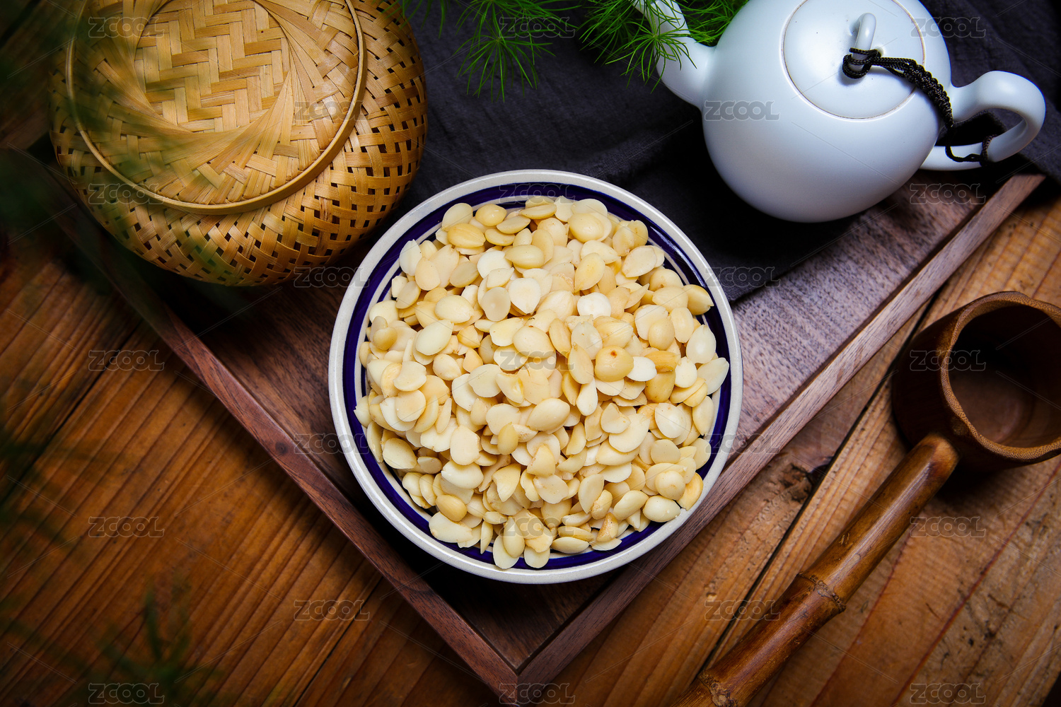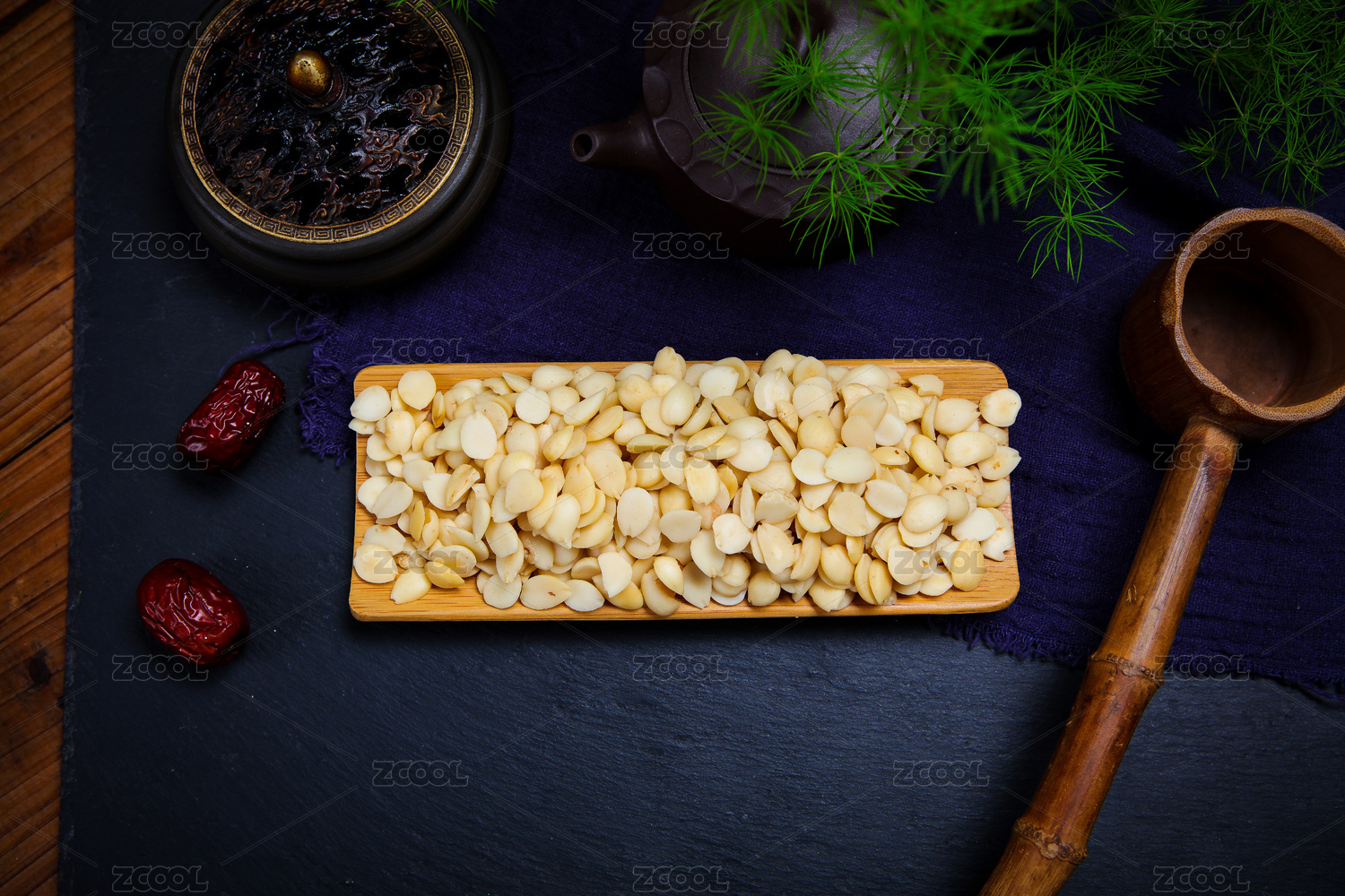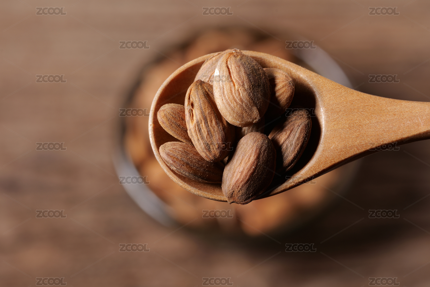 中國古風背景的中藥桃仁特寫