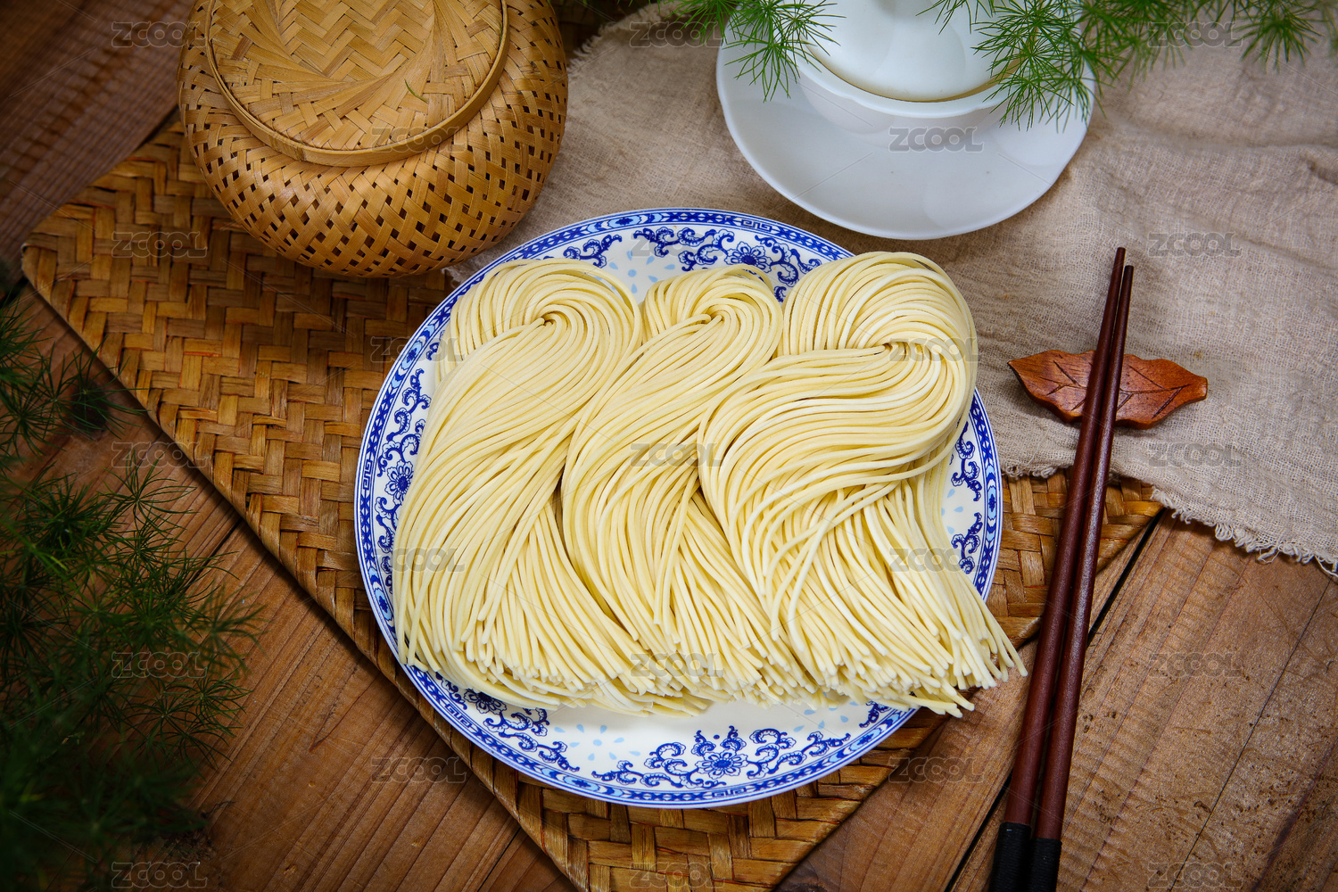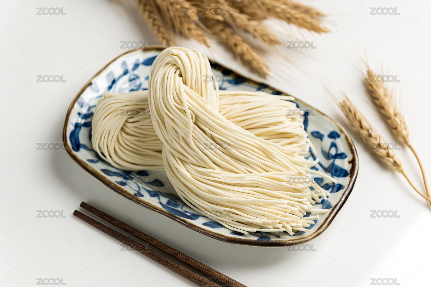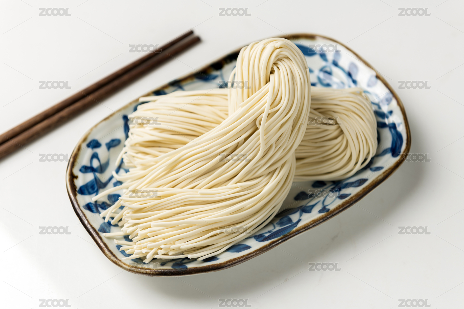 瓷盤子里的生面條