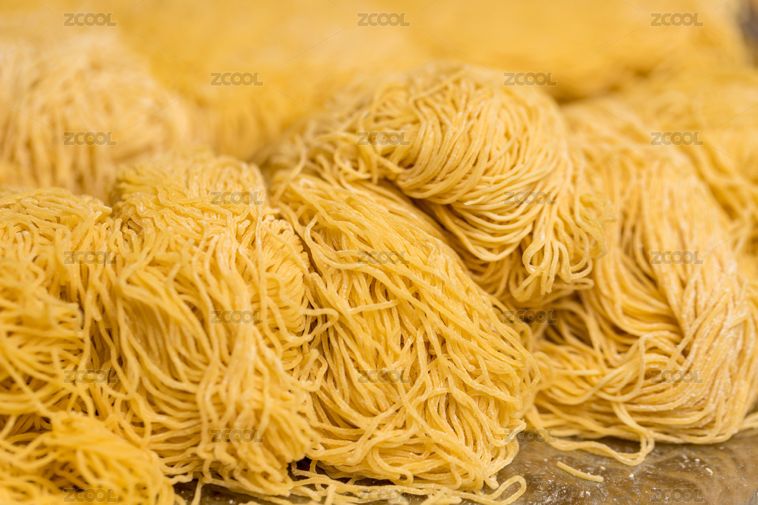 許多團(tuán)黃色生面條堆在一起