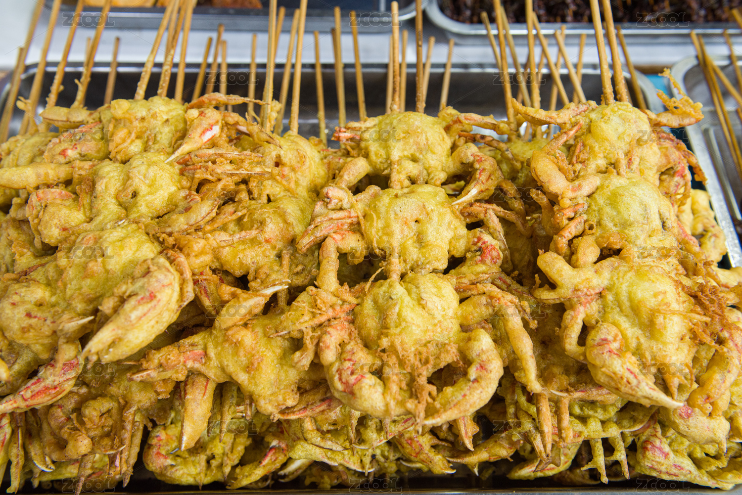 山東省青島市劈柴院美食街的炸螃蟹