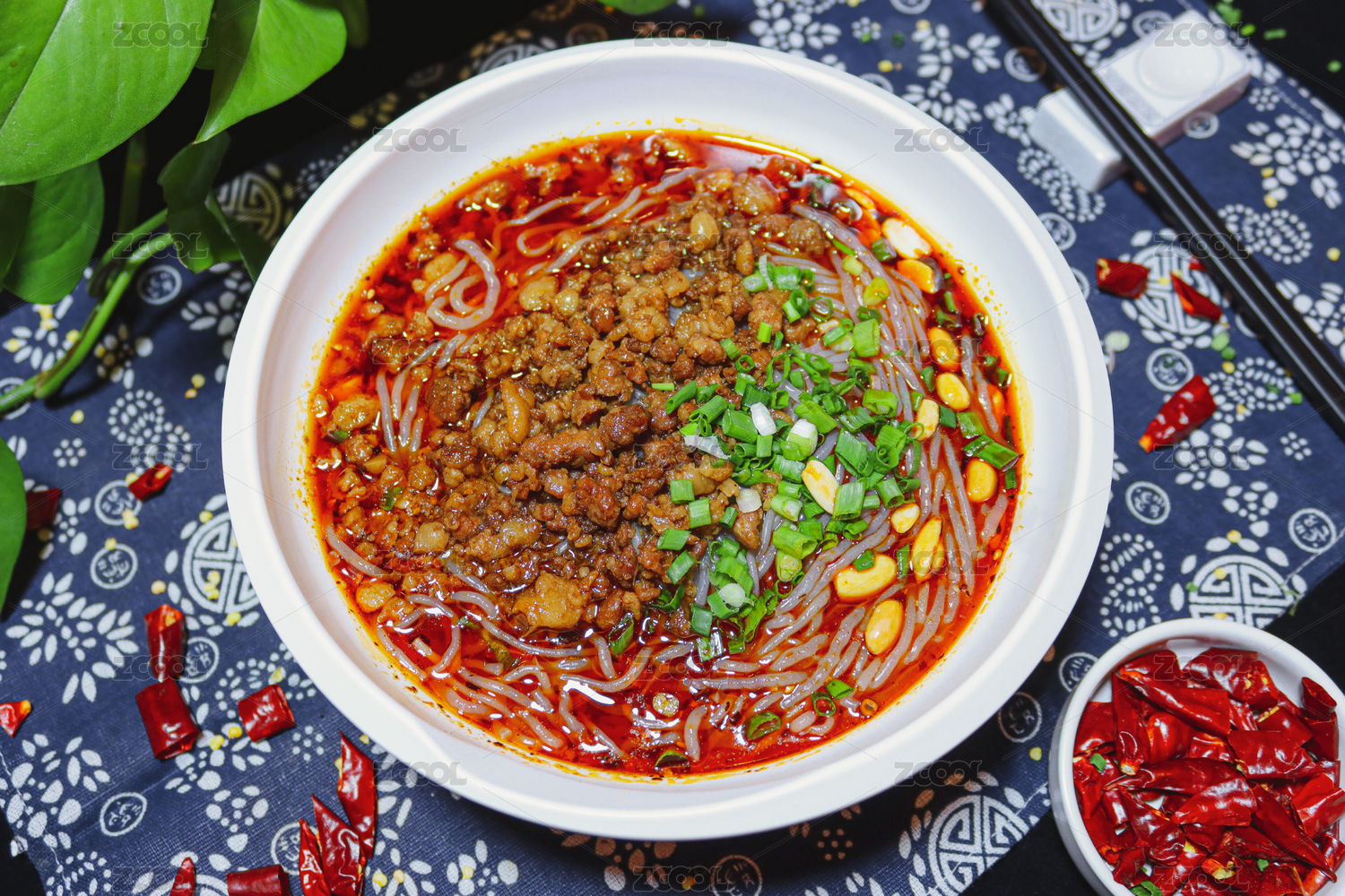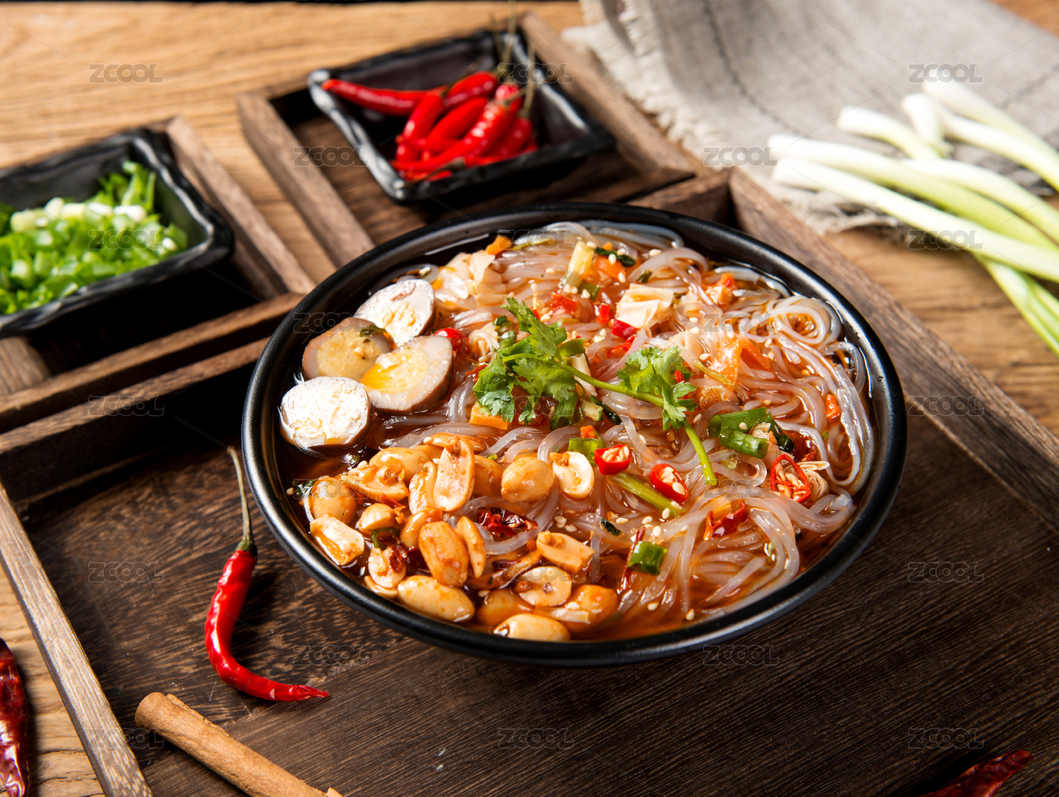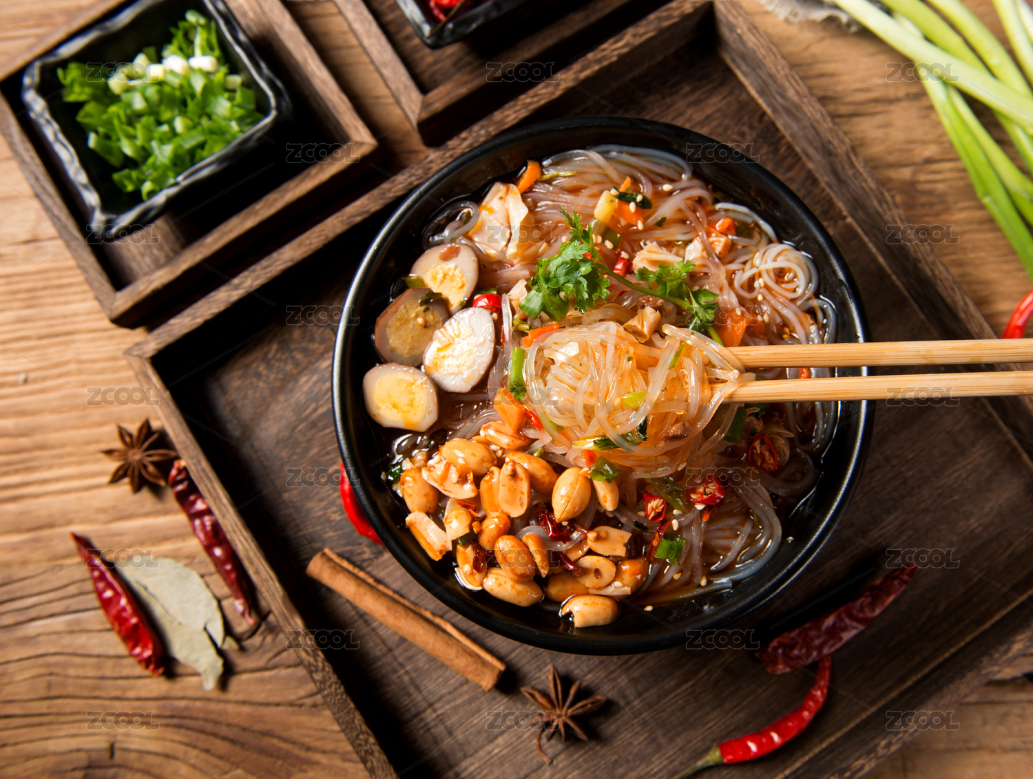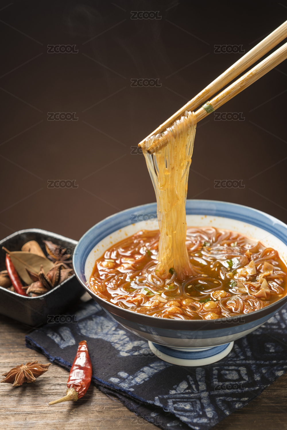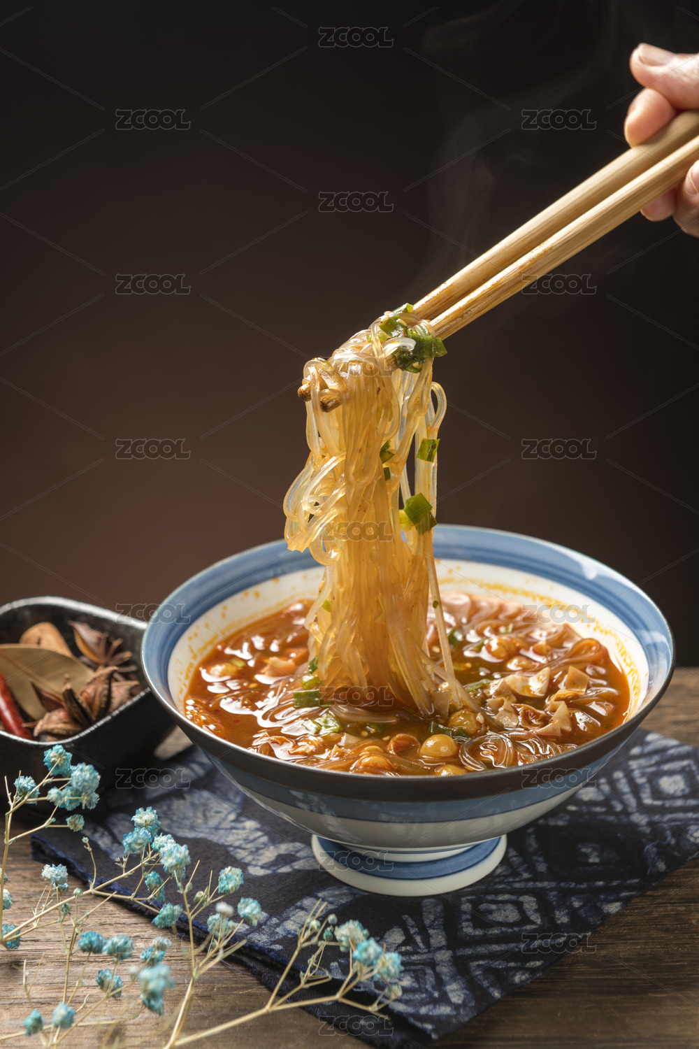 筷子夾酸辣粉四川小吃特寫(xiě)