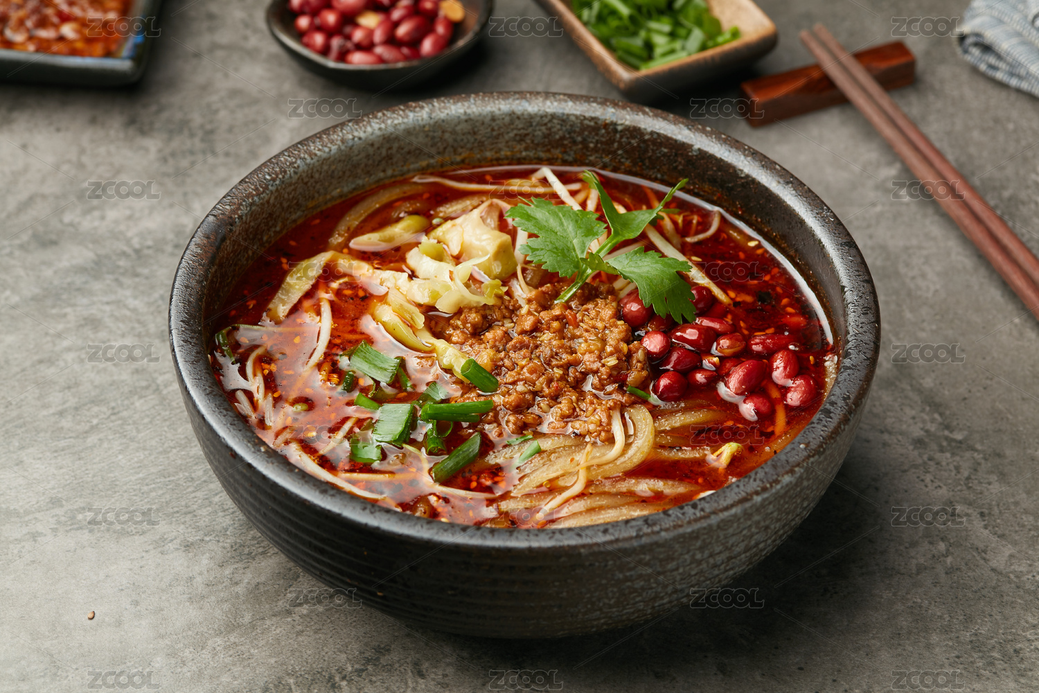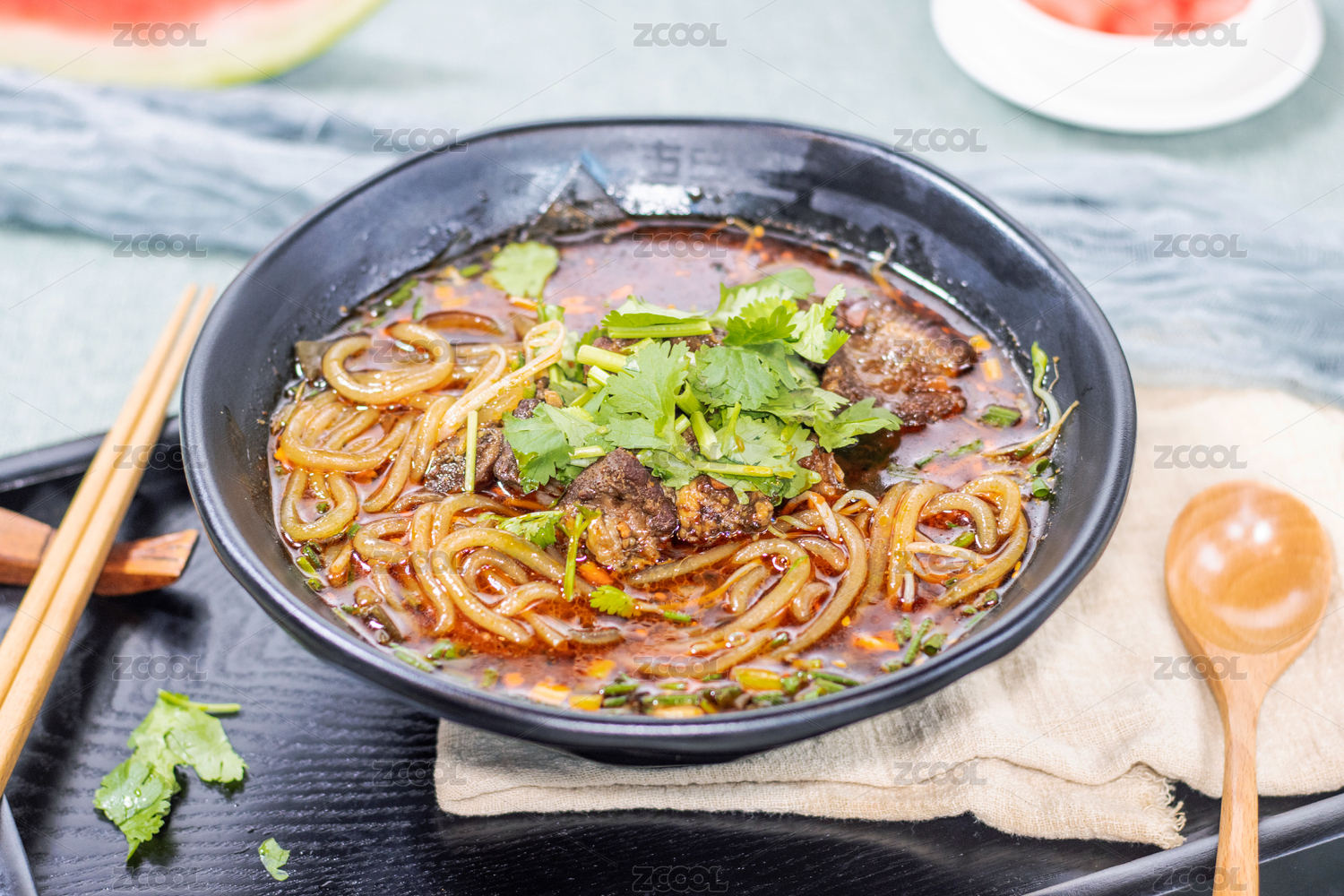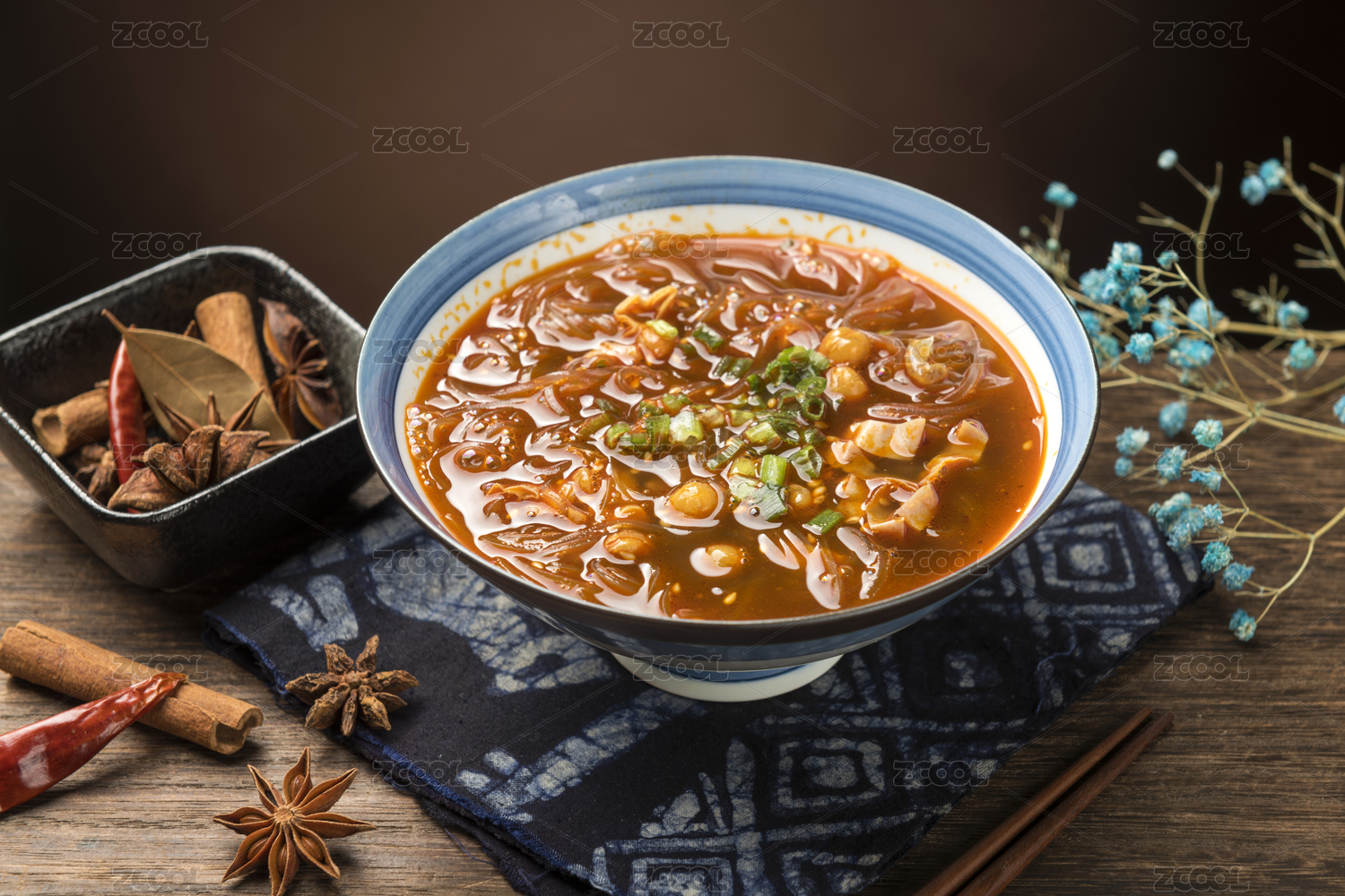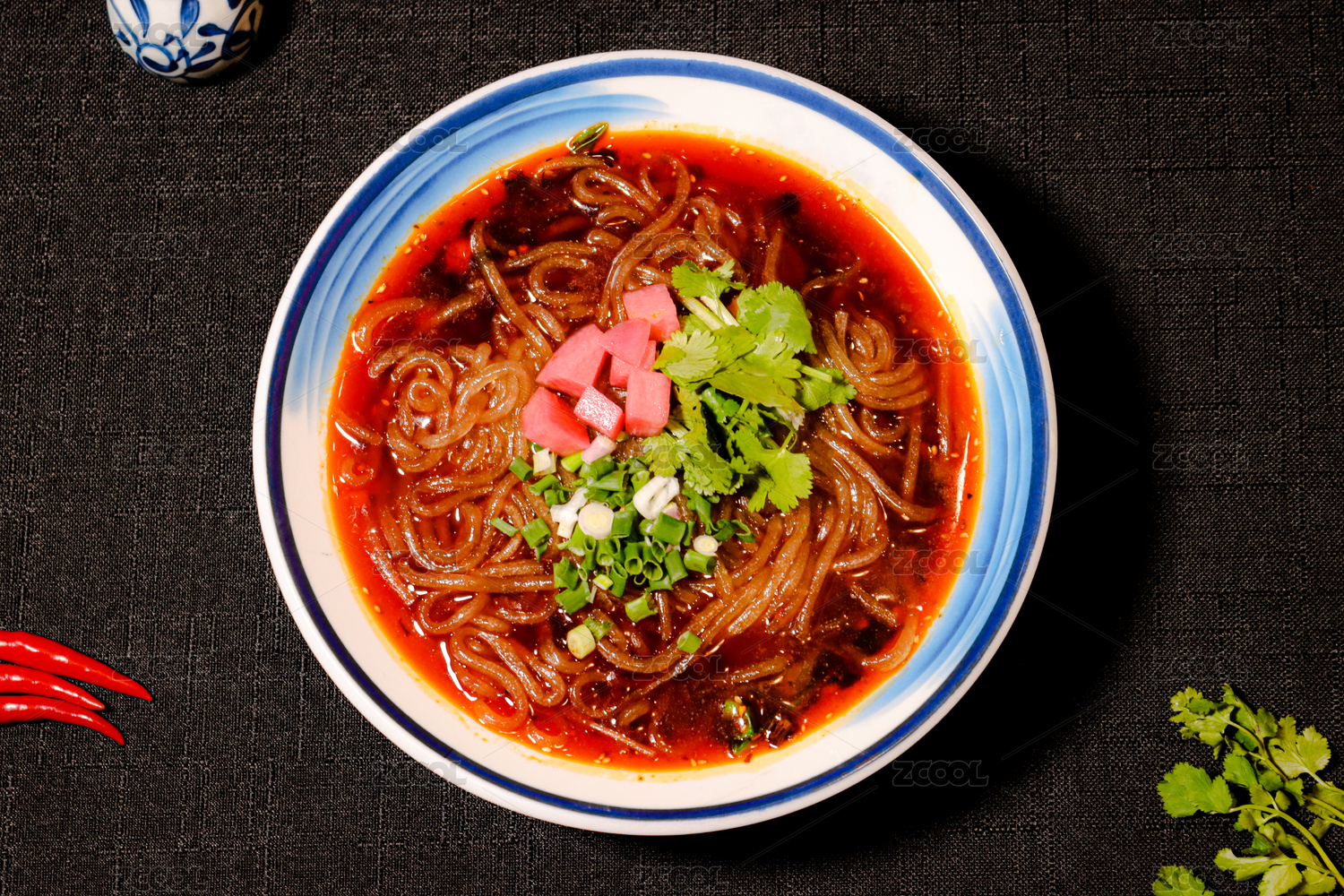 復(fù)古背景上碗里的麻辣米線酸辣粉