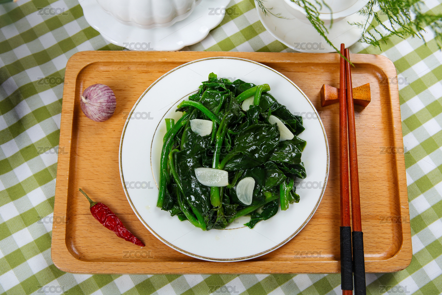 桌子上盤子里盛著清炒木耳菜
