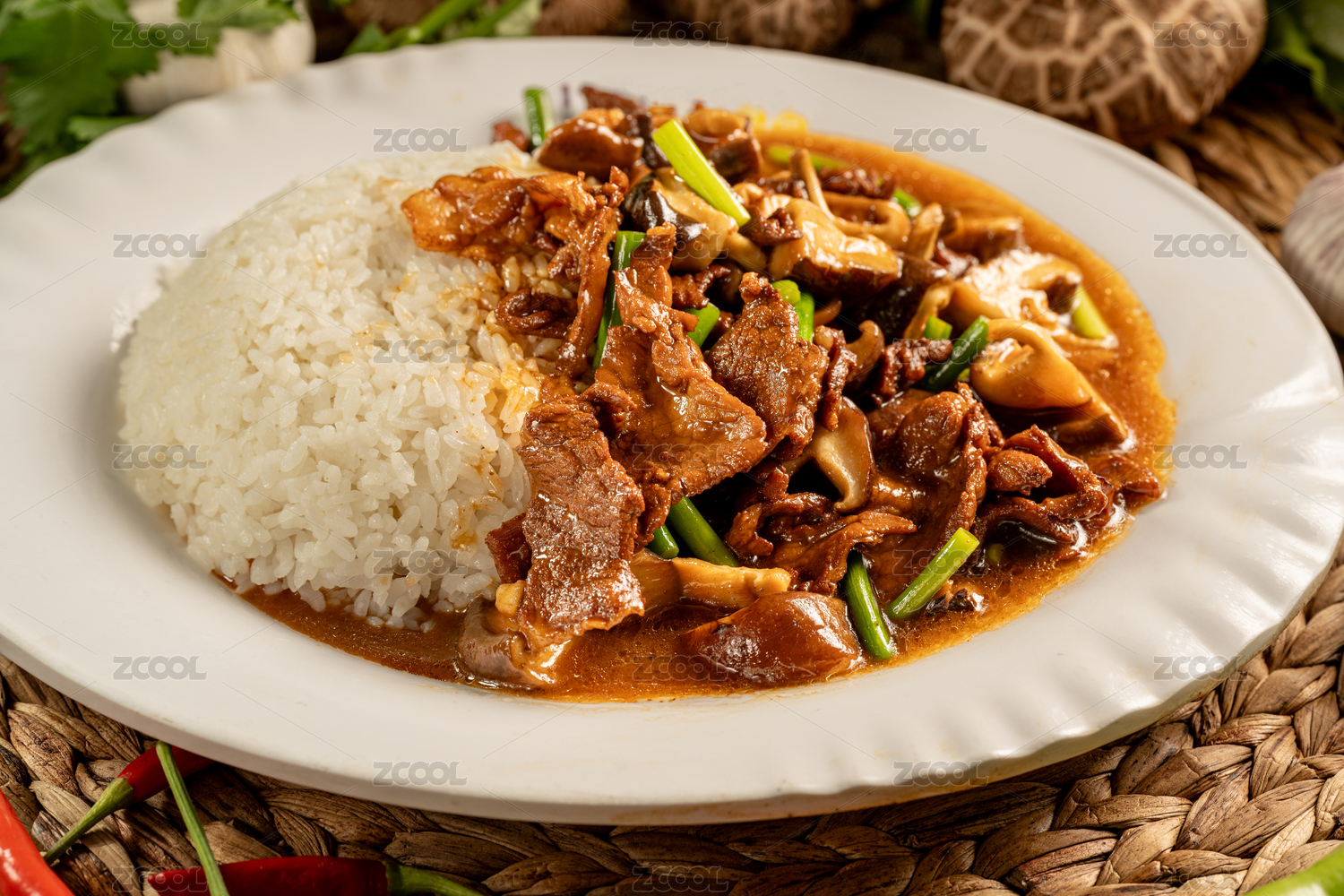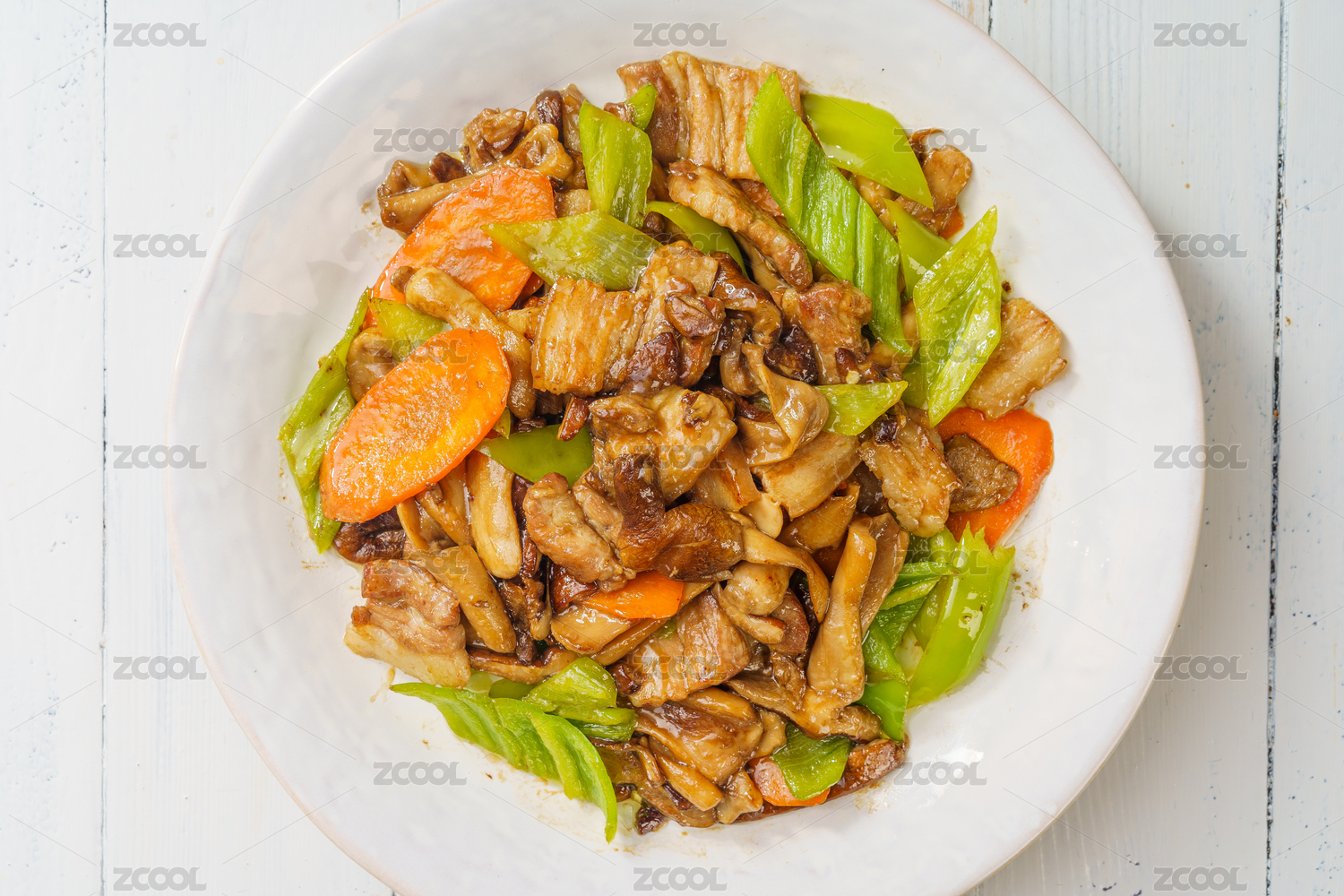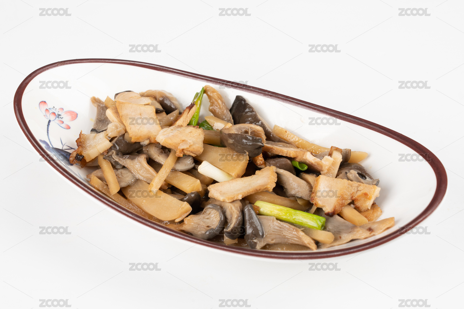 簡(jiǎn)單背景下的特色中餐蘑菇炒肉