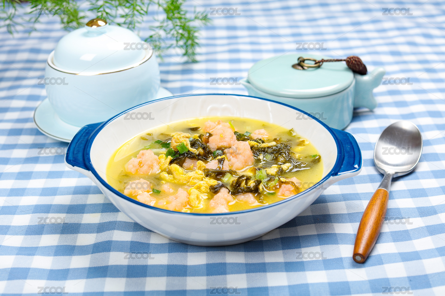 特色湯菜美食水煮蝦滑雞蛋紫菜湯
