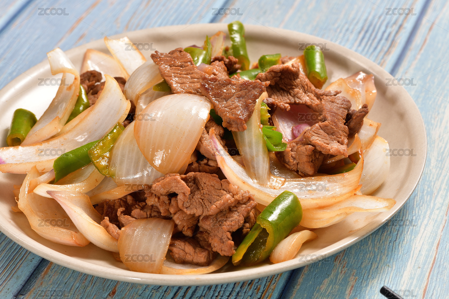 中餐美食雙椒洋蔥炒肉片