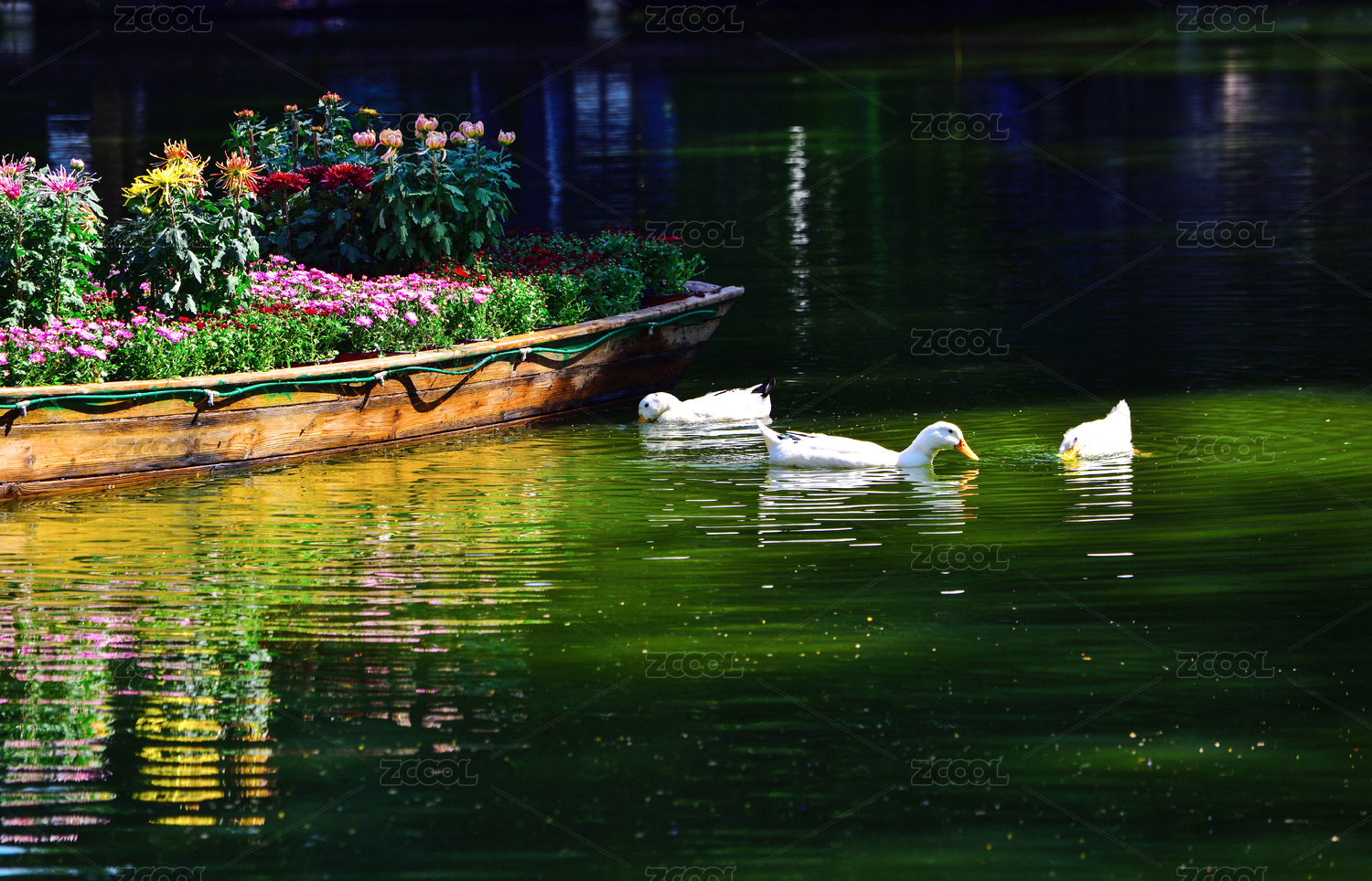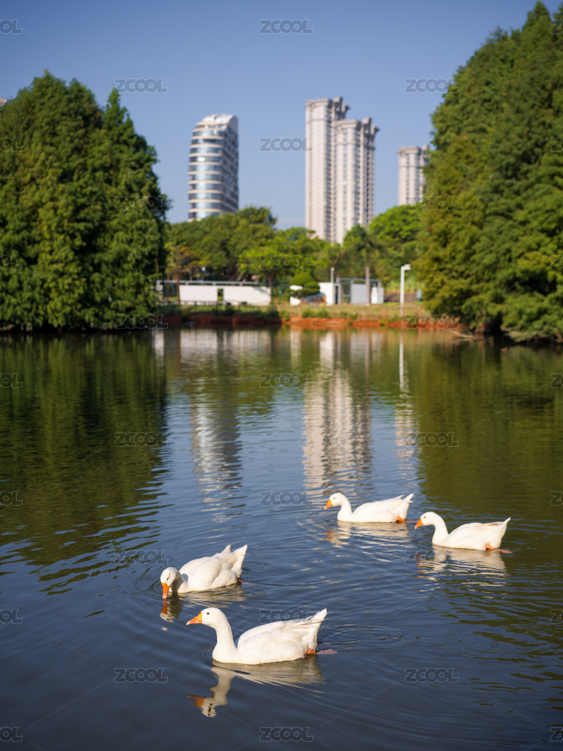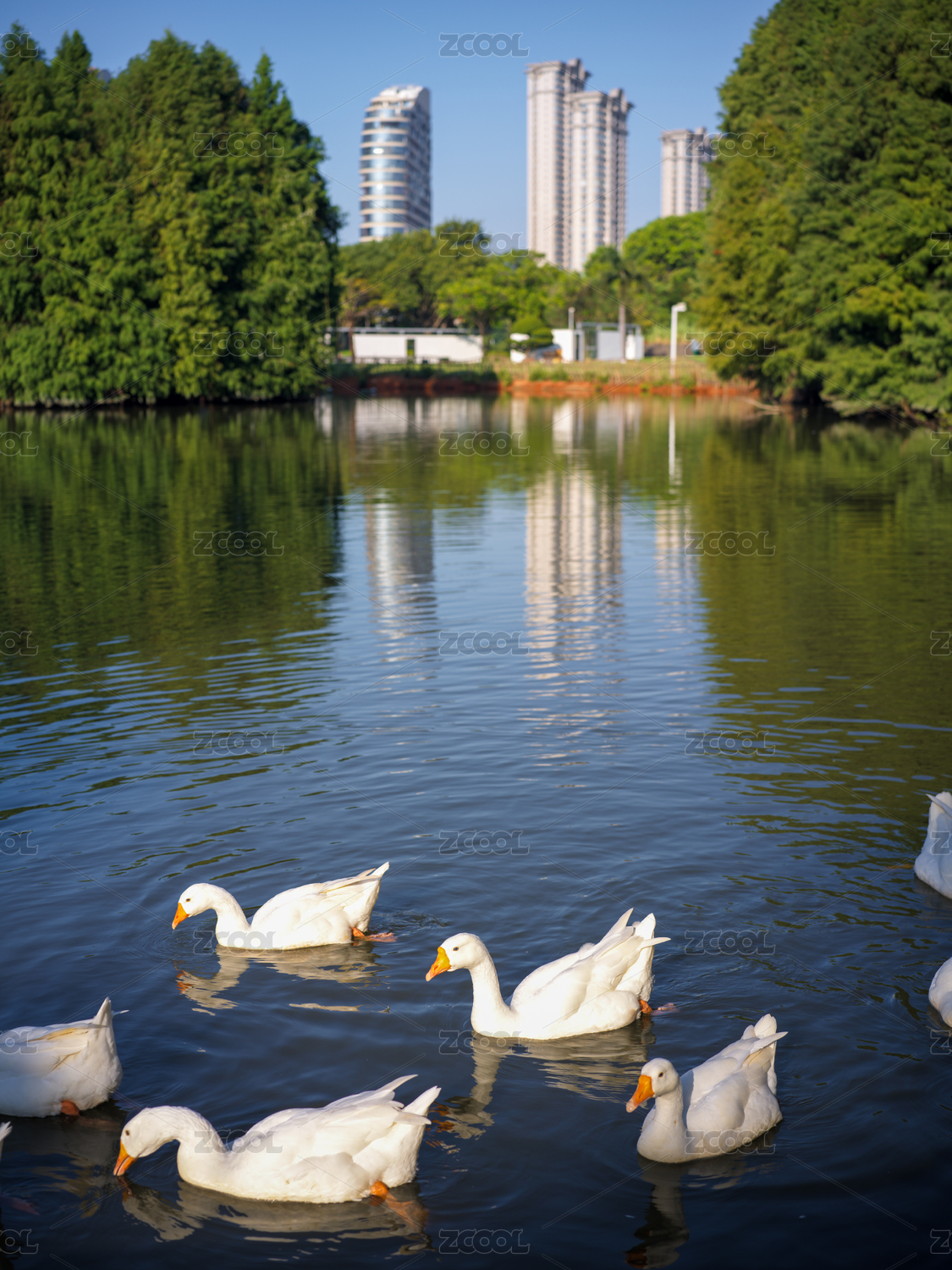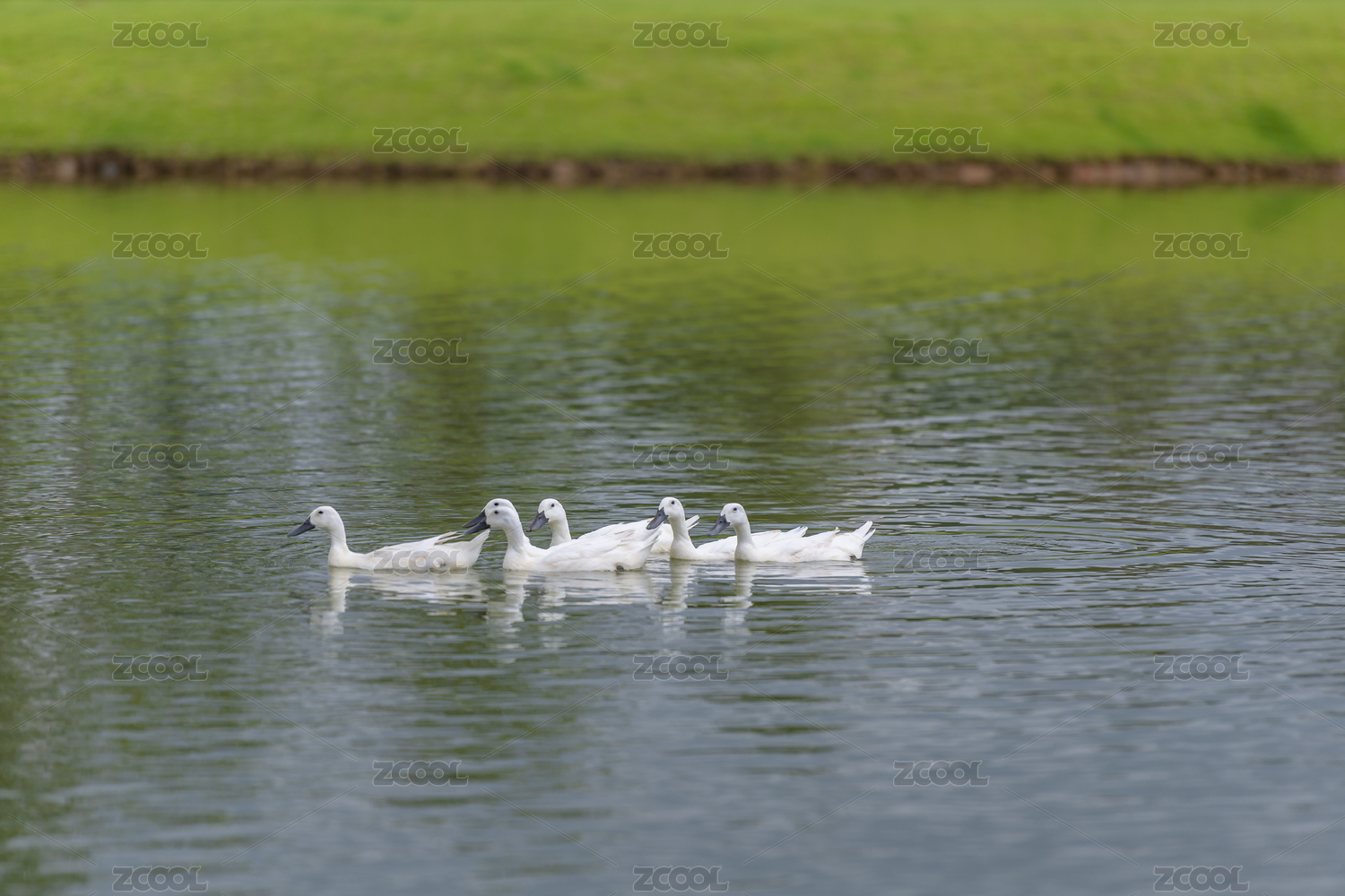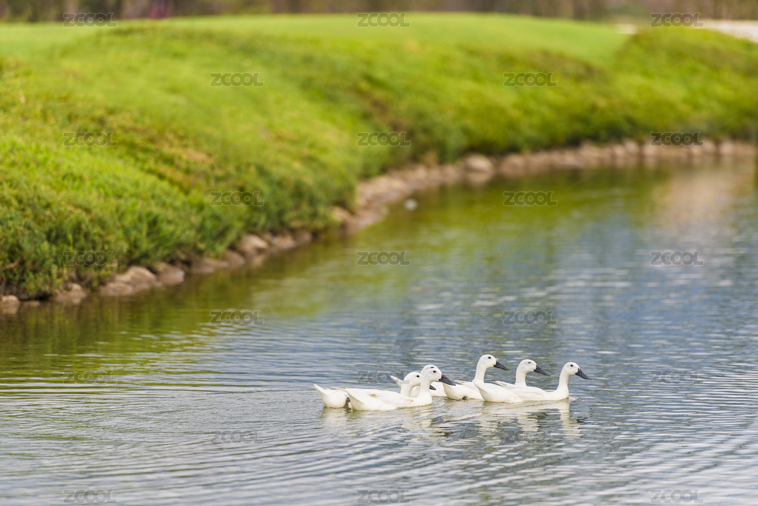江蘇溧陽神馬農(nóng)場里一群在水里游泳的大白鴨