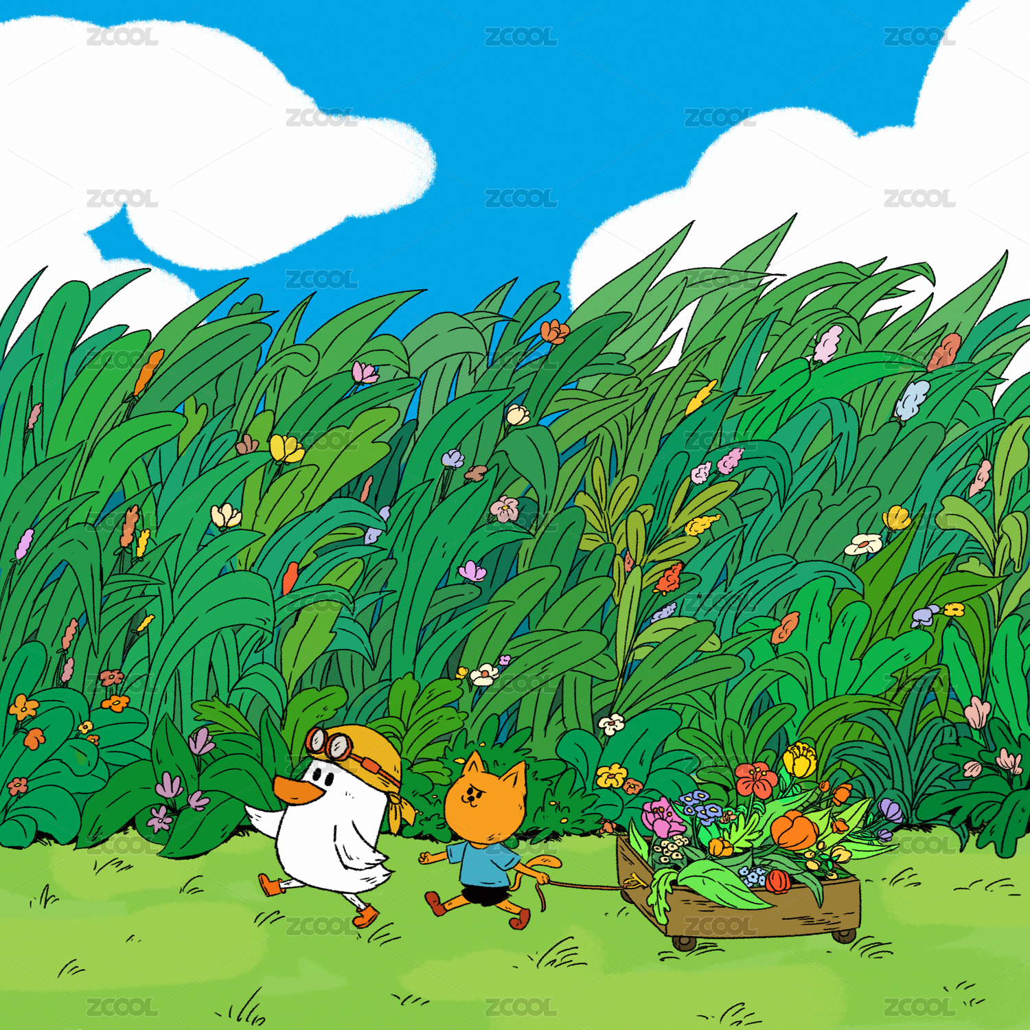 小河旁水稻田邊穿裙子的女孩坐在白鴨身上