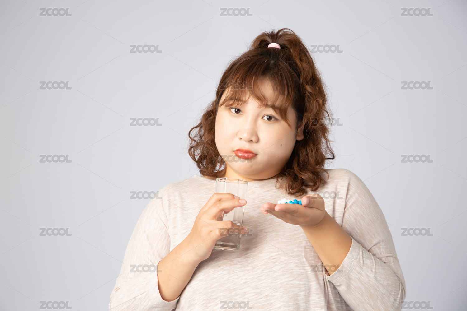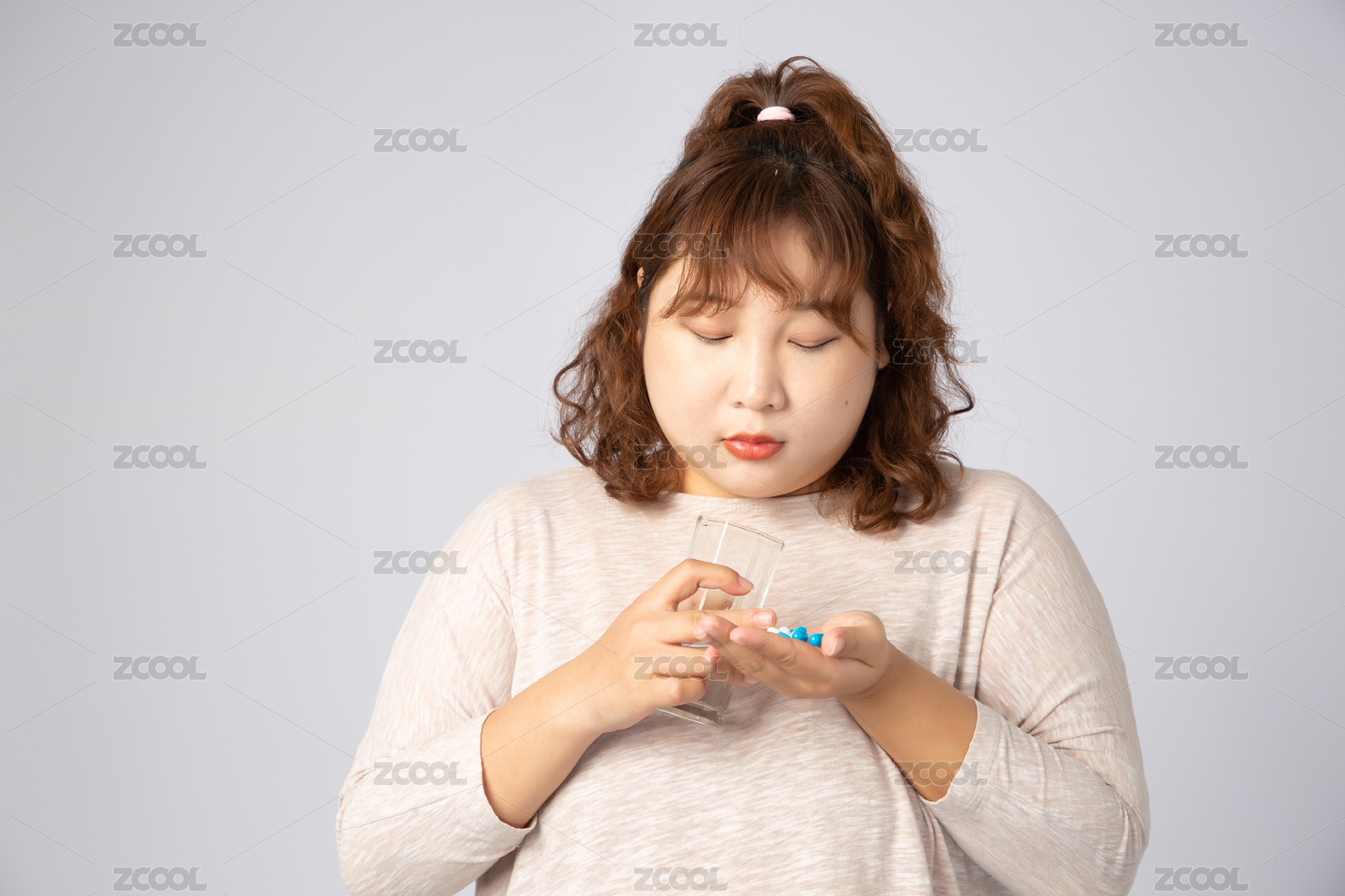 正在吃藥的亞洲肥胖女孩