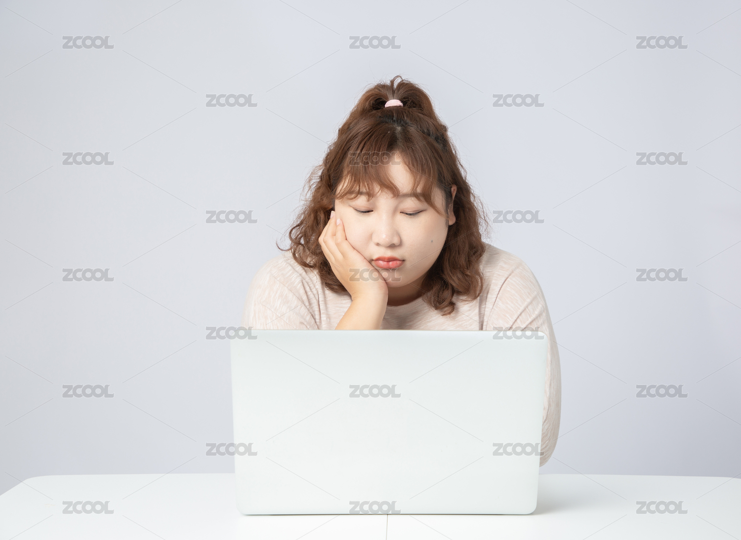 正在使用電腦的亞洲肥胖女孩