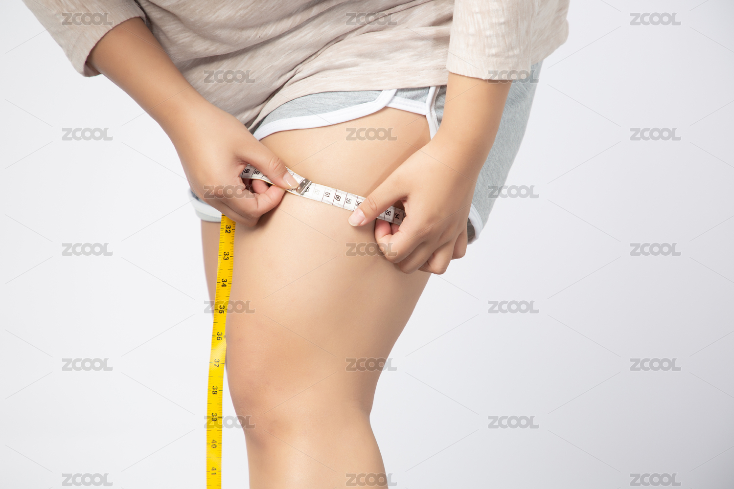 肥胖女孩測(cè)量腿部特寫