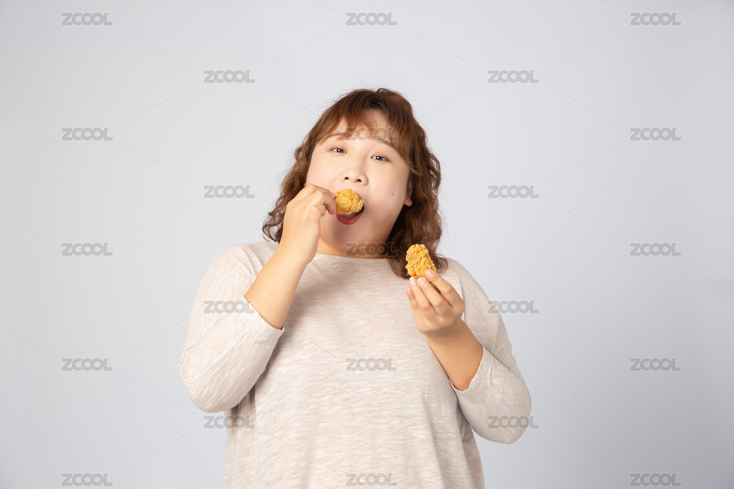 吃炸雞的亞洲肥胖女孩