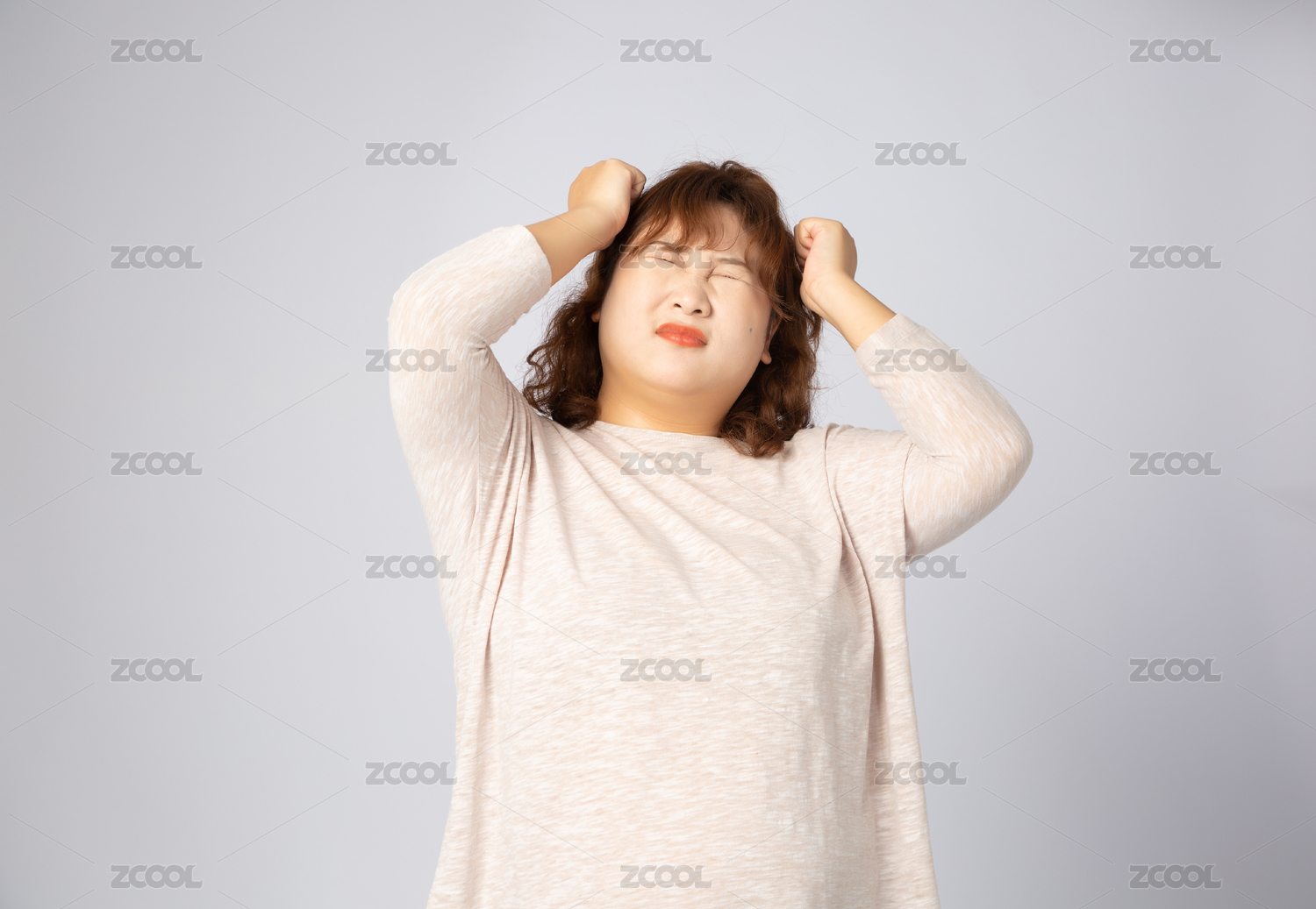 沮喪煩躁的亞洲肥胖女孩