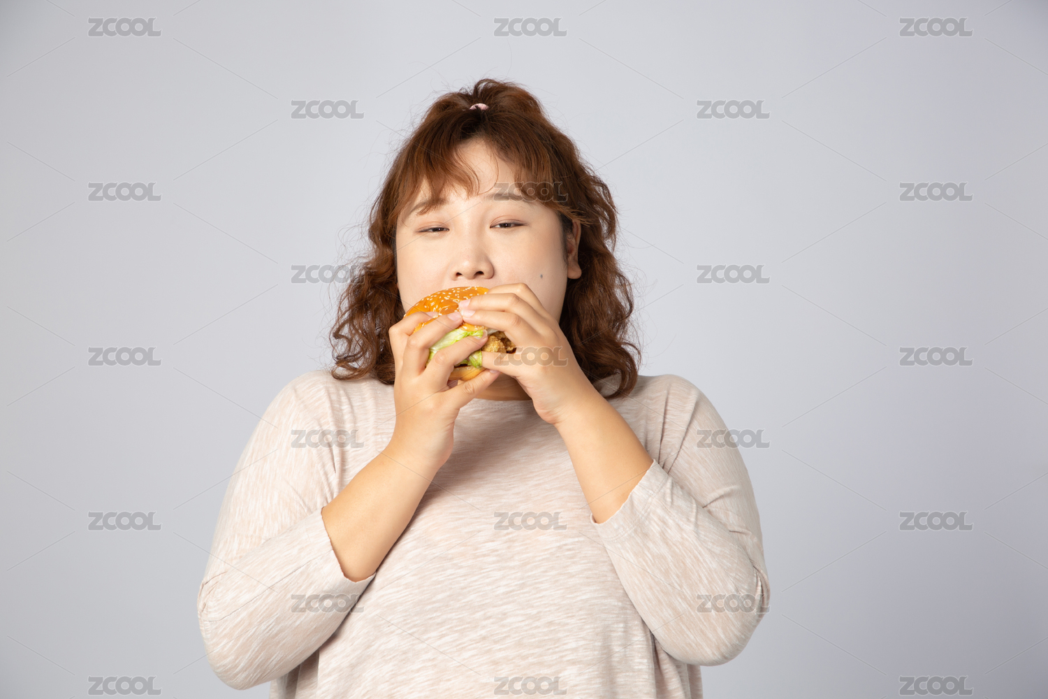 吃漢堡的亞洲肥胖女孩