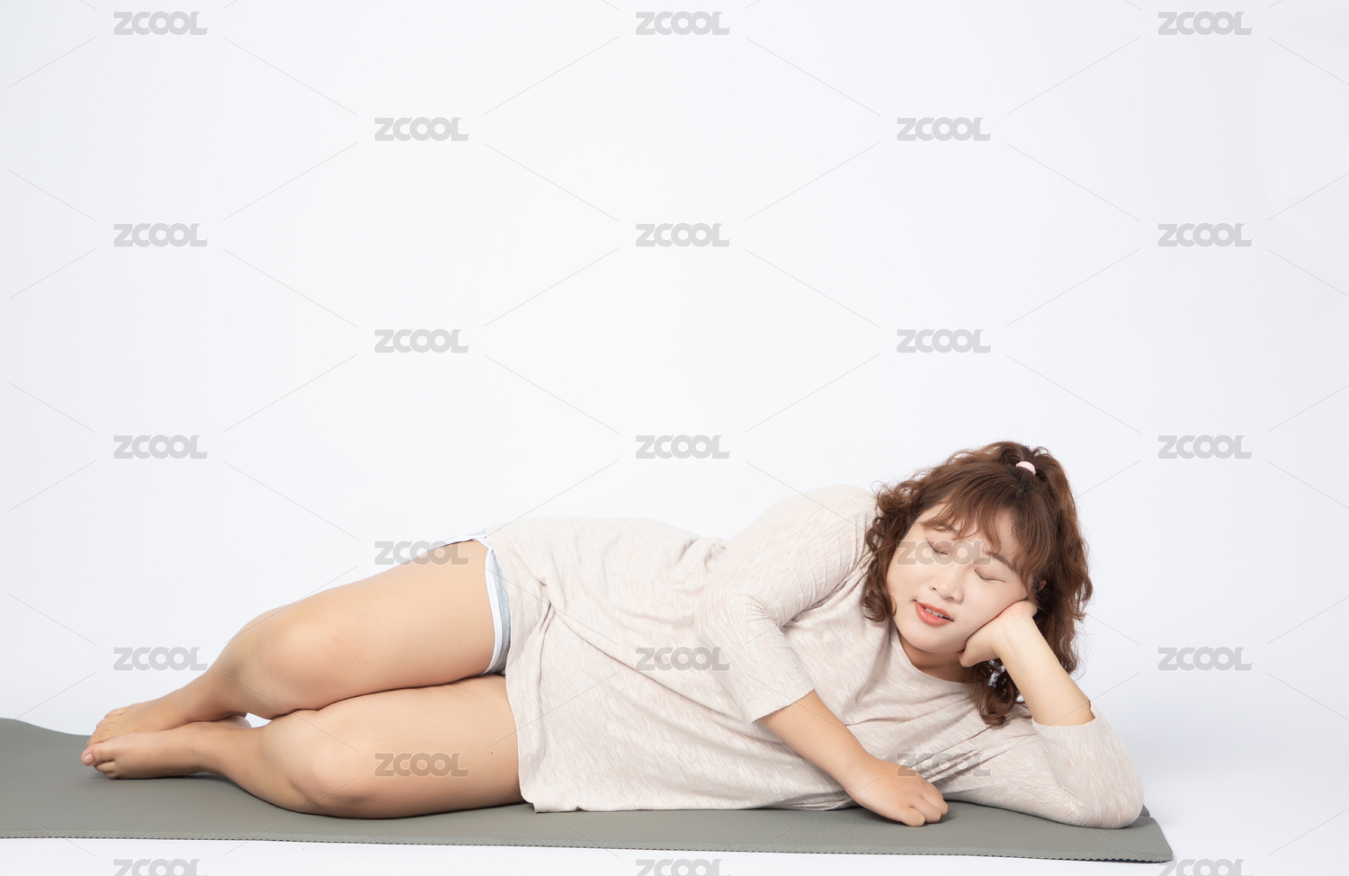 躺在瑜伽墊上休息的亞洲肥胖女孩