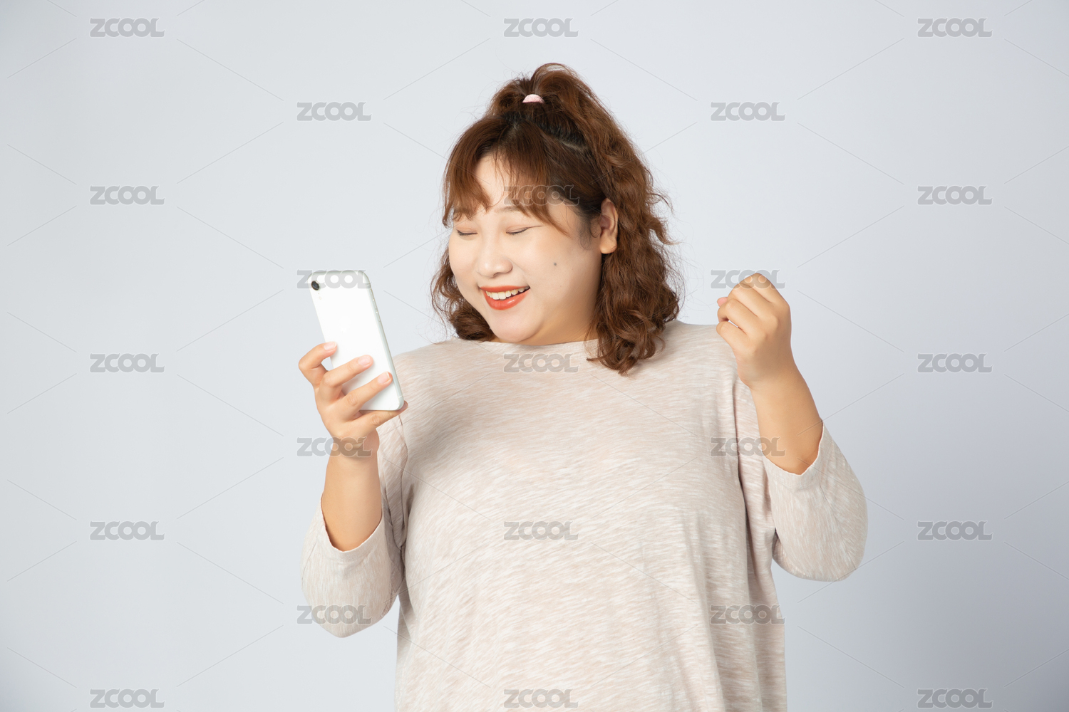 可愛(ài)的亞洲肥胖女孩兒使用手機(jī)