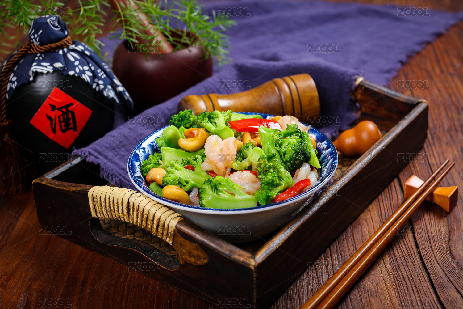 特色農(nóng)家菜小炒西蘭花腰果蝦仁