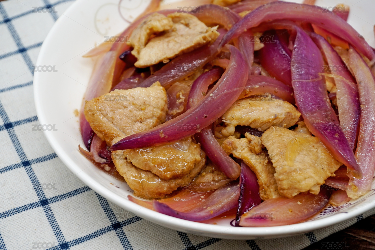 放在盤(pán)子里的洋蔥炒肉片