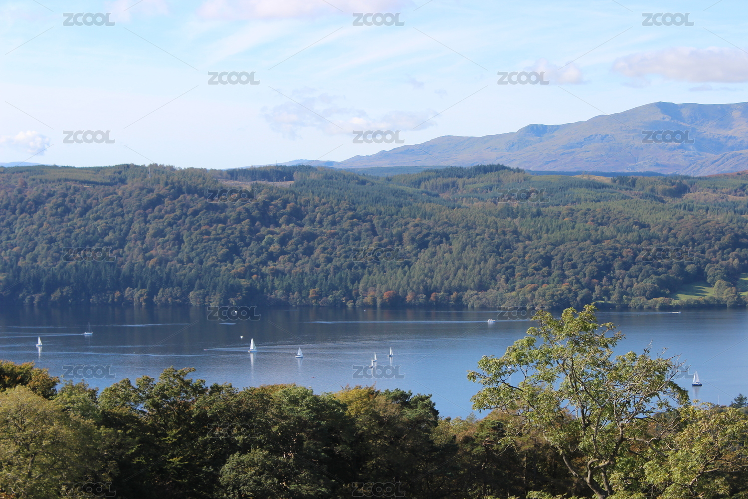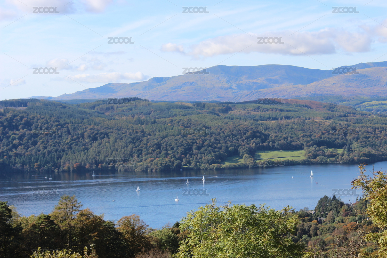 英國湖區(qū)自然公園水面帆船風(fēng)光