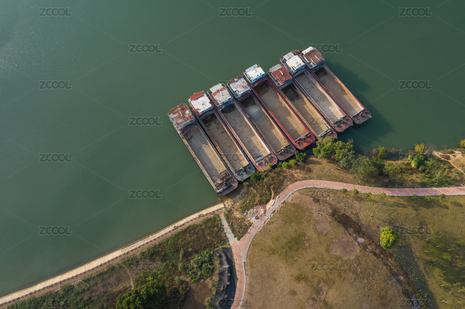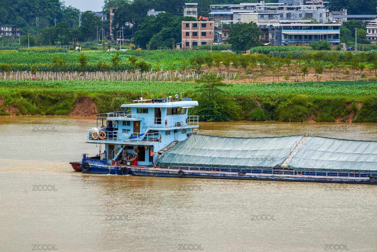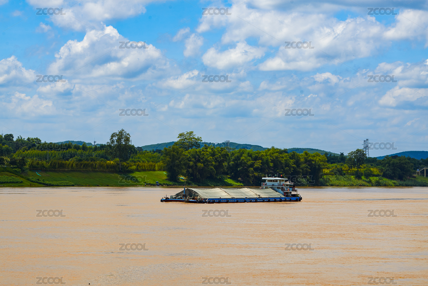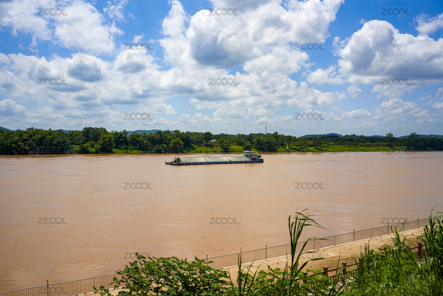 中國(guó)云南省大理州瀾滄江上航運(yùn)的采砂貨運(yùn)船