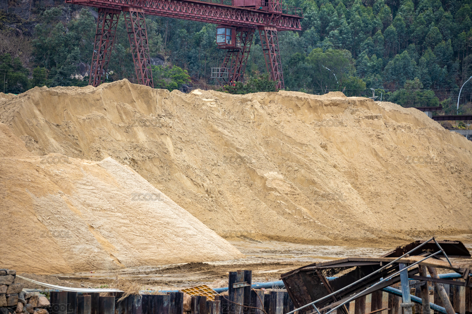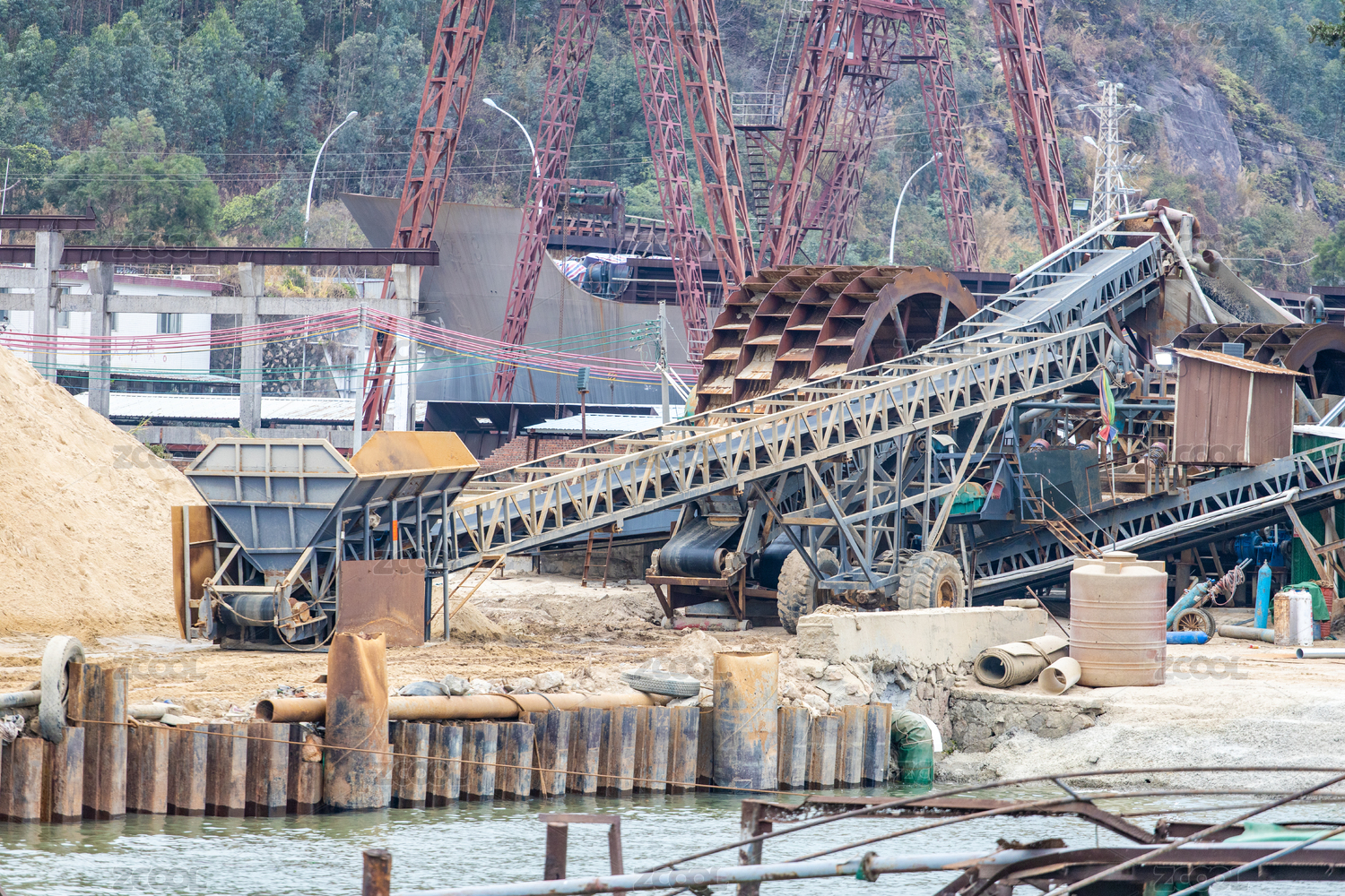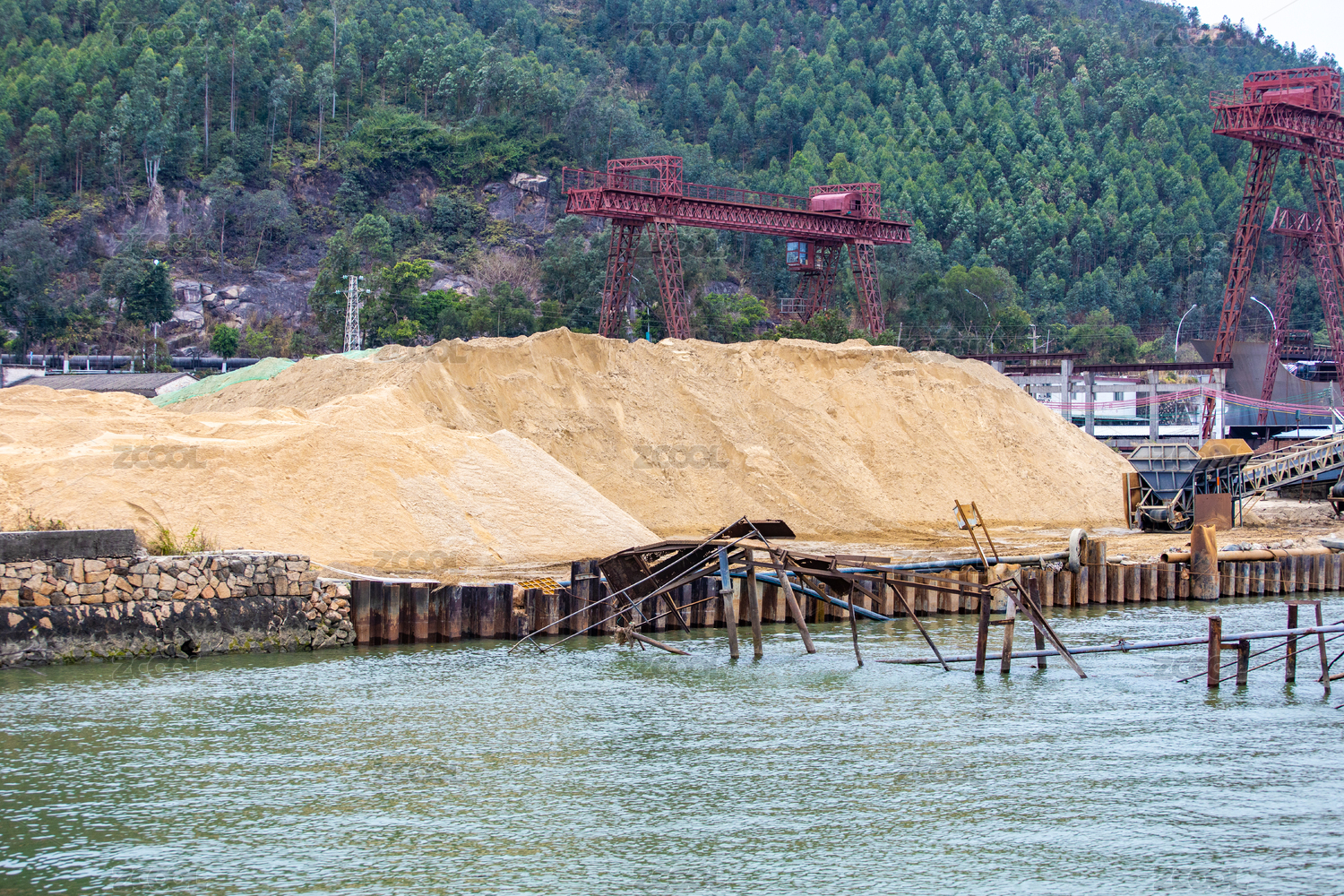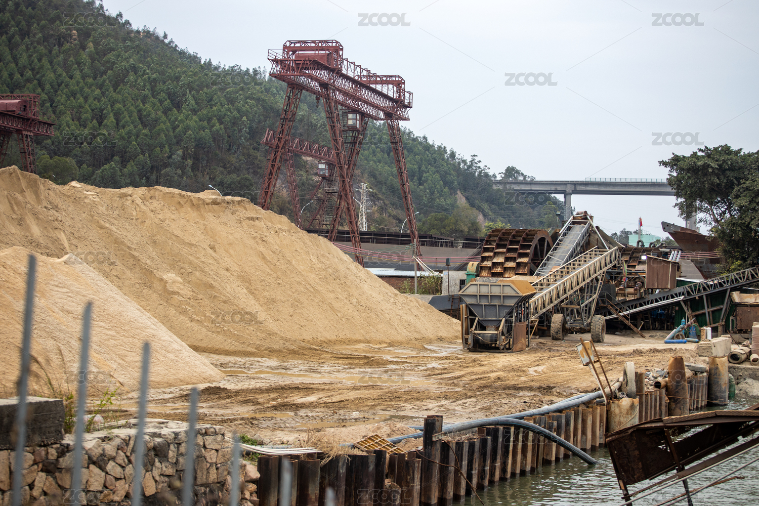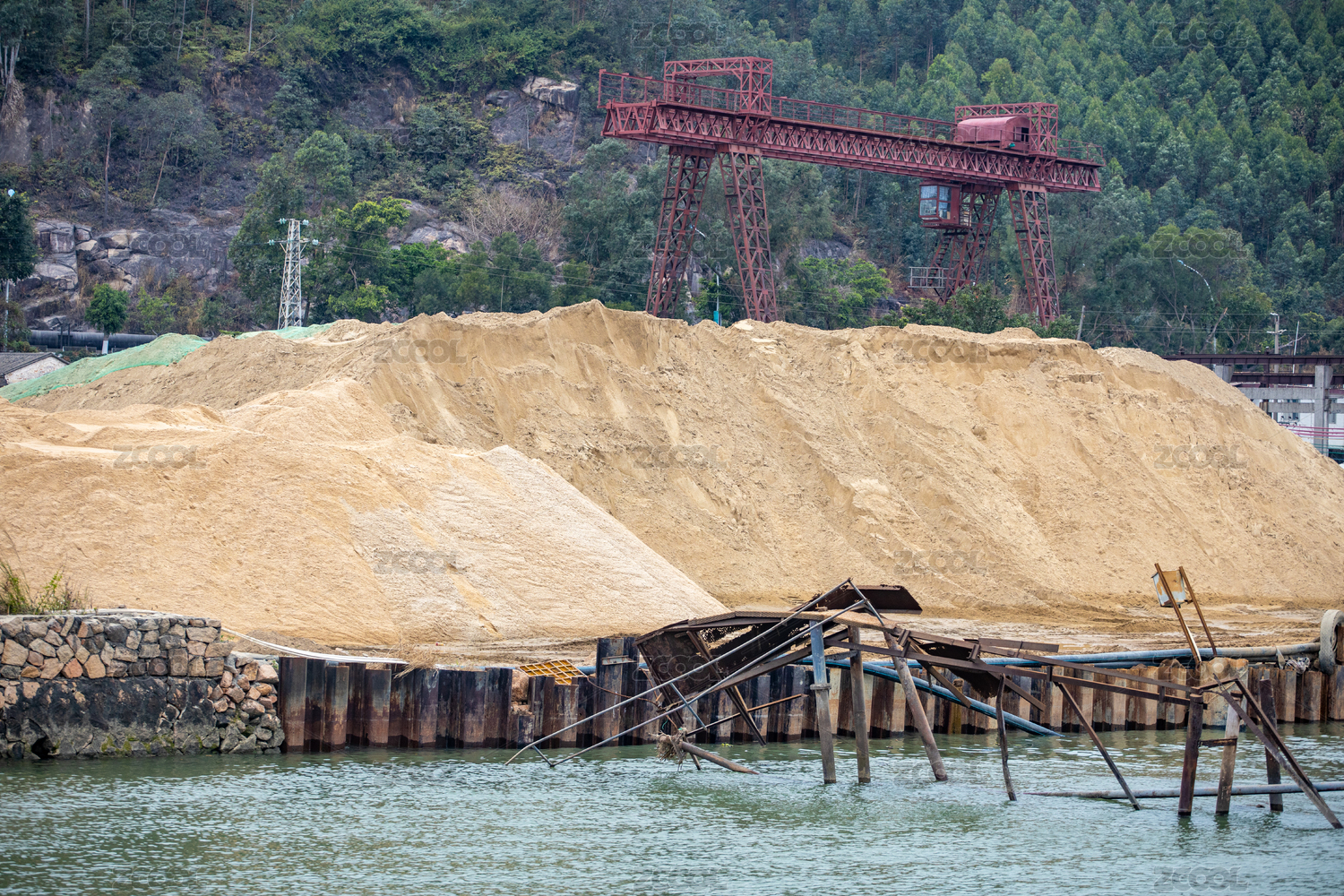 河岸邊的大型采沙場(chǎng)