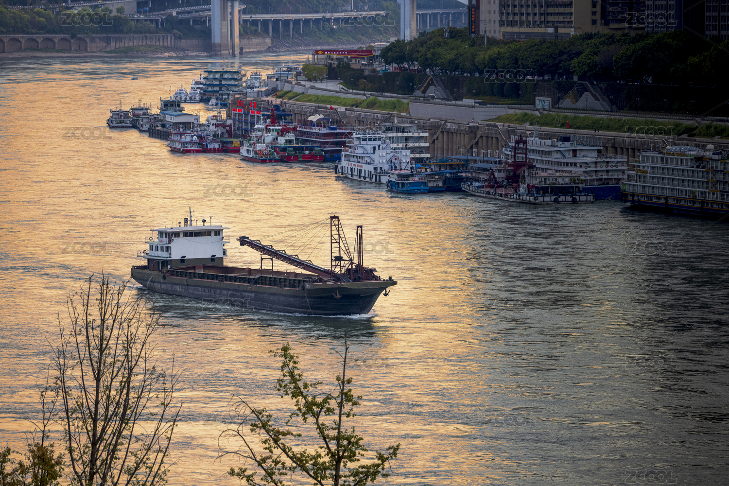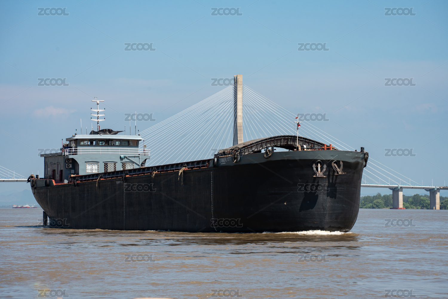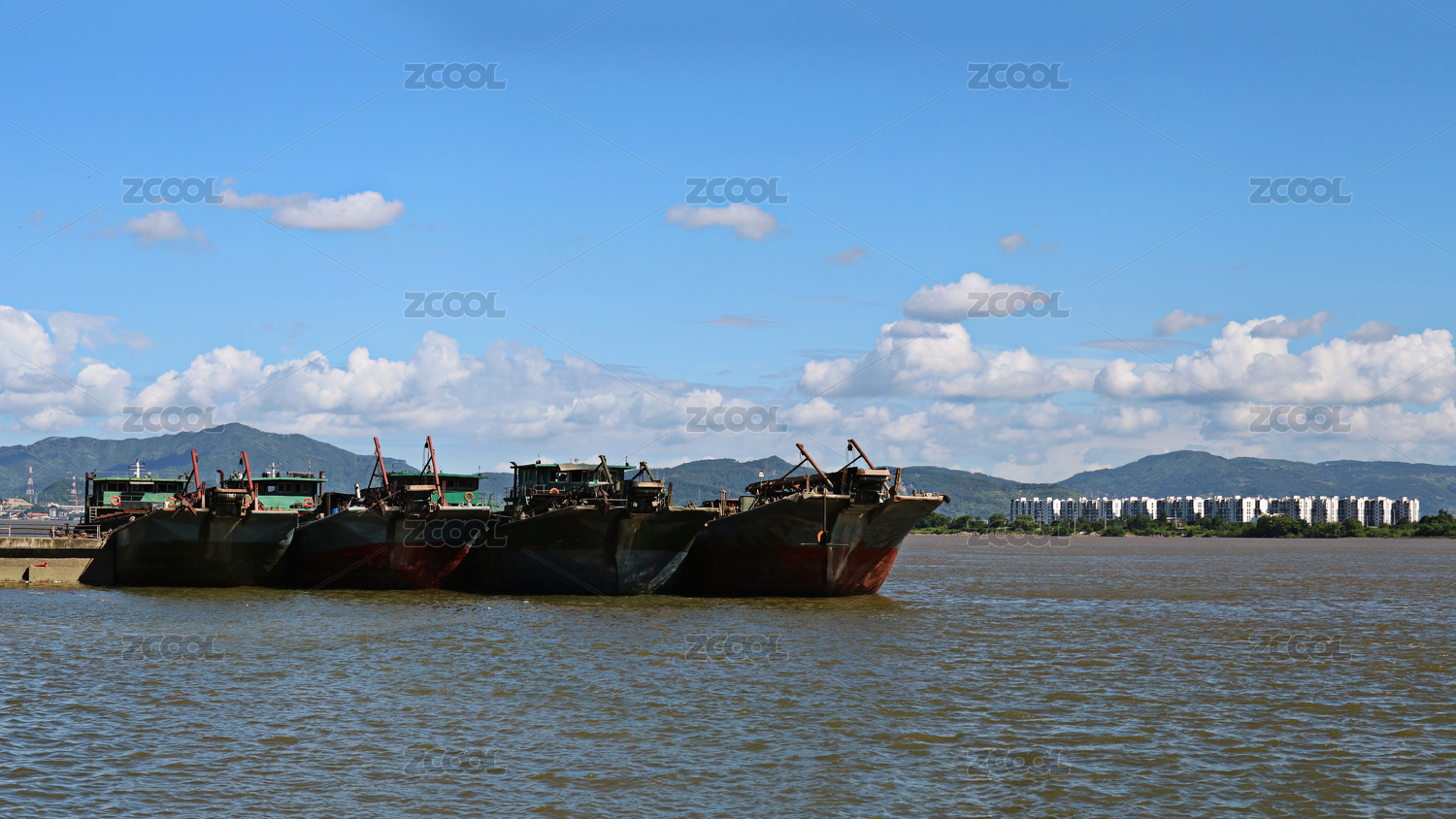 江河里一艘大型采砂船