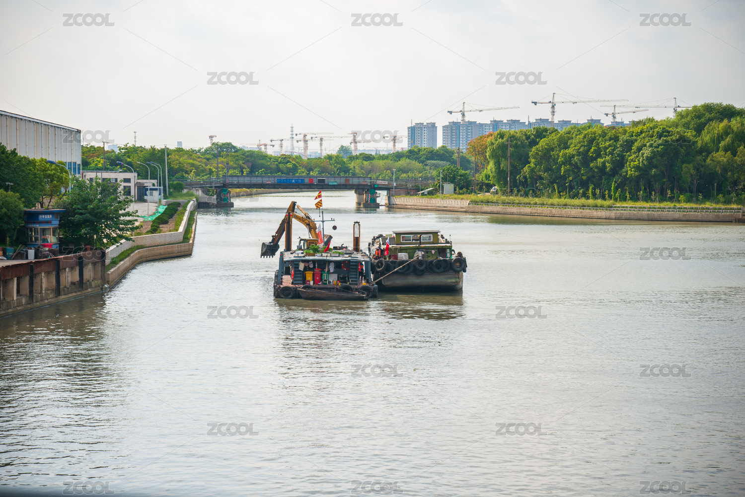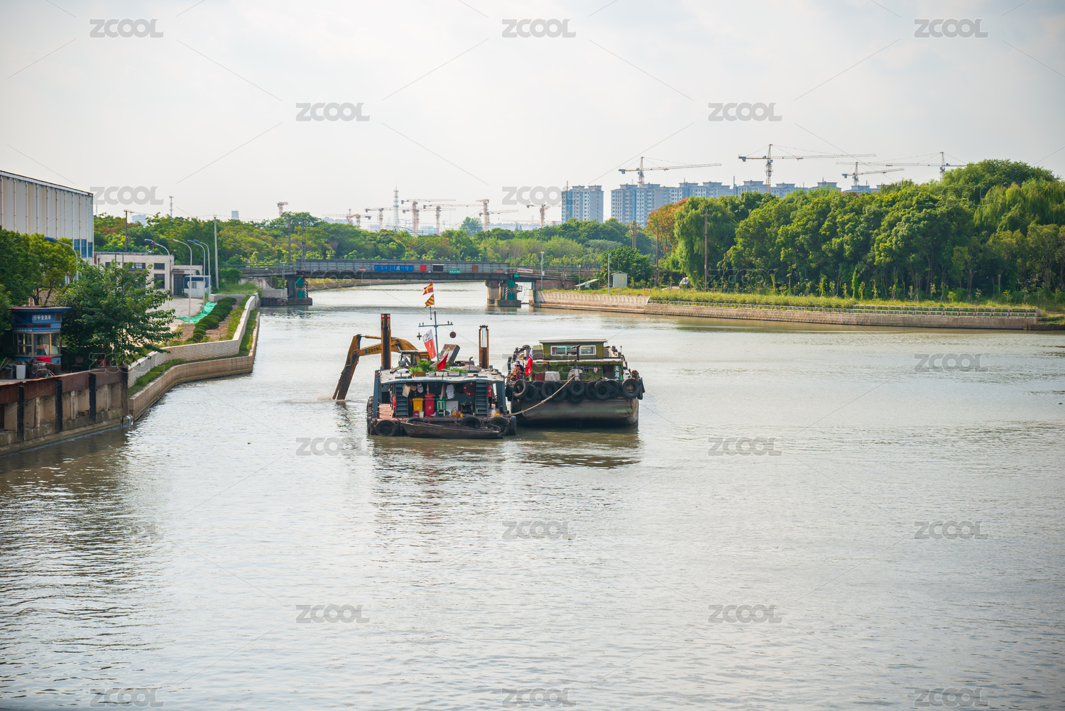 河道中的清污船