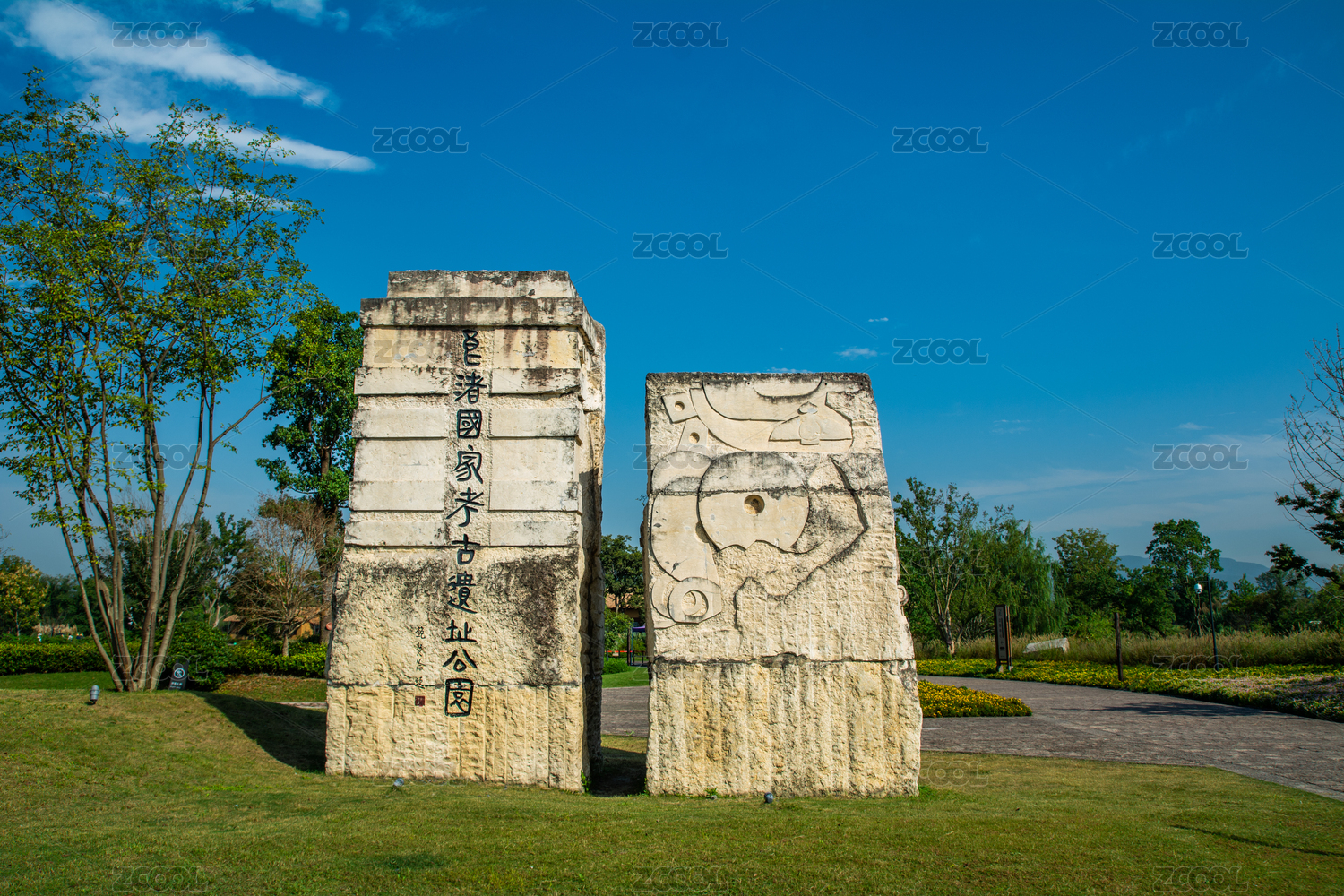 中國(guó)浙江杭州良渚古城遺址公園入口景觀石雕