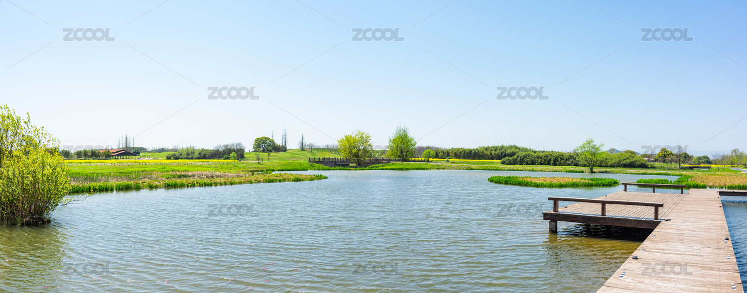 浙江杭州良渚古城遺址公園春天湖畔風(fēng)景