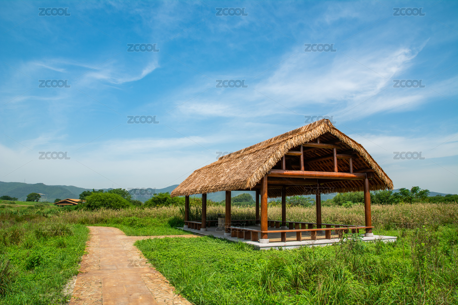 浙江杭州良渚古城遺址公園仿古茅草屋