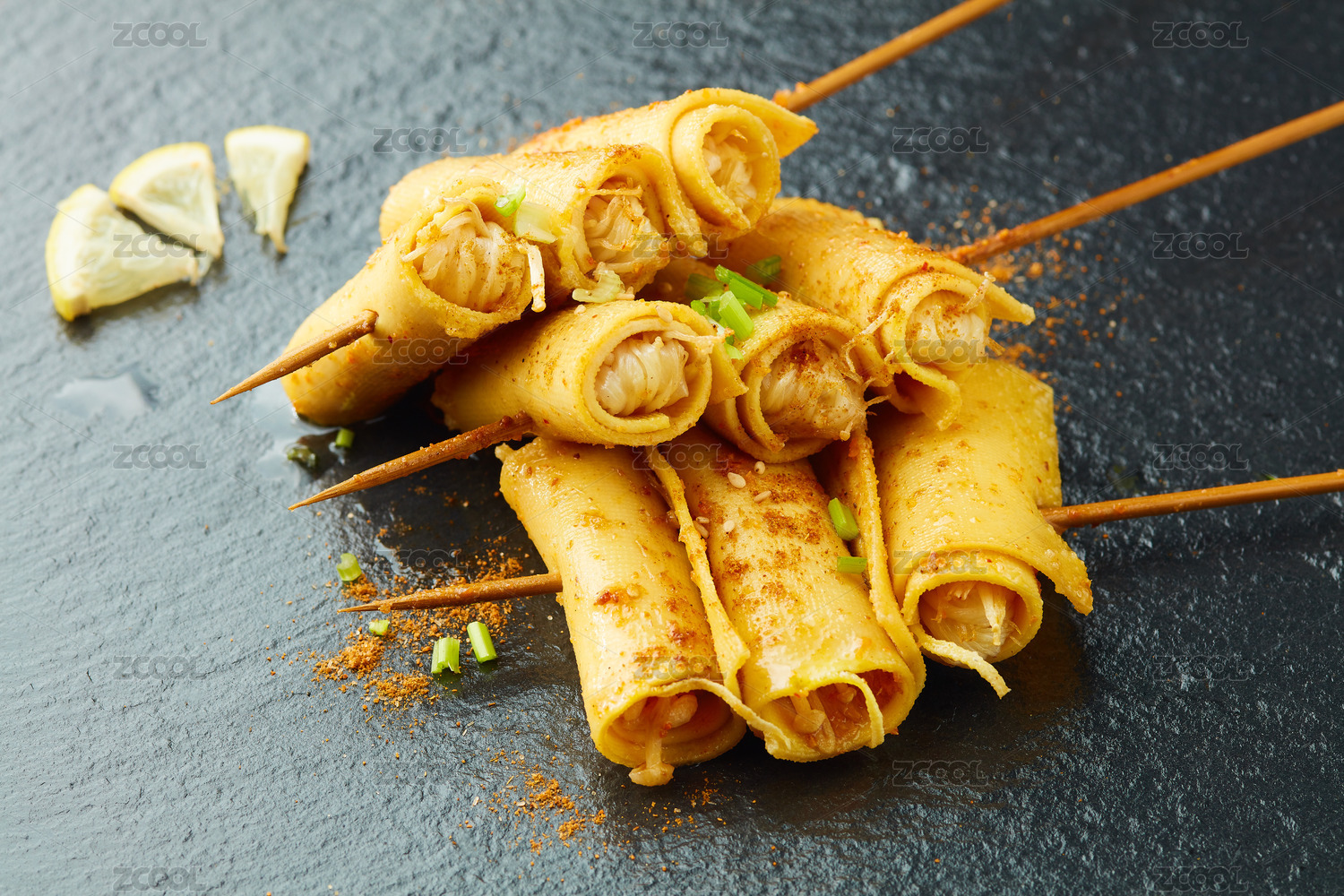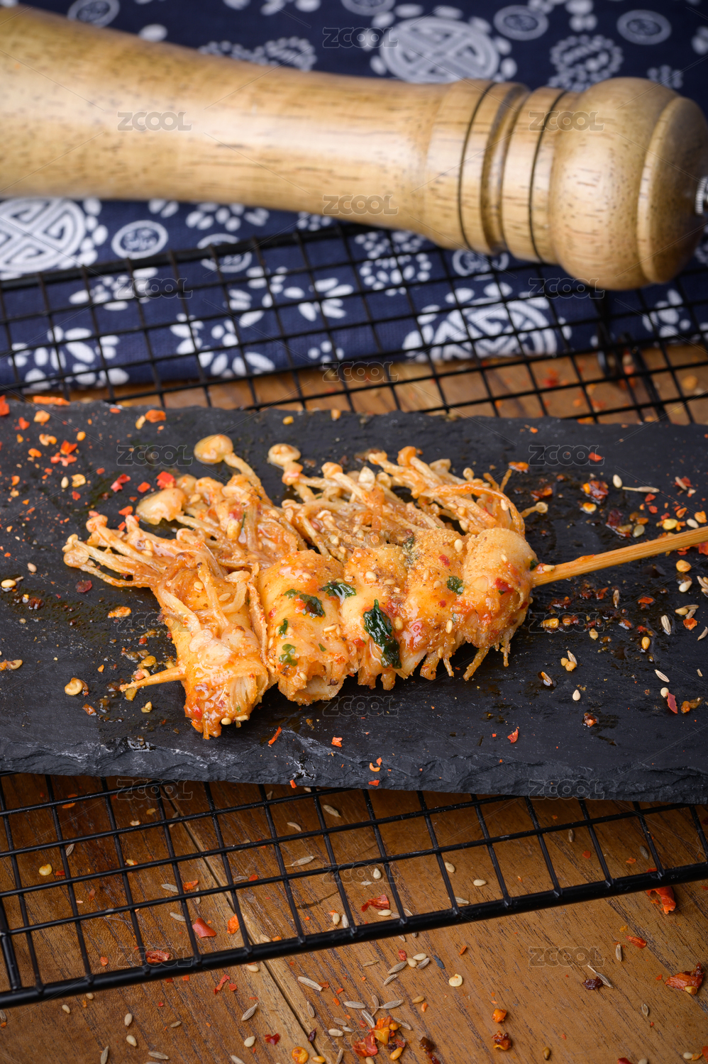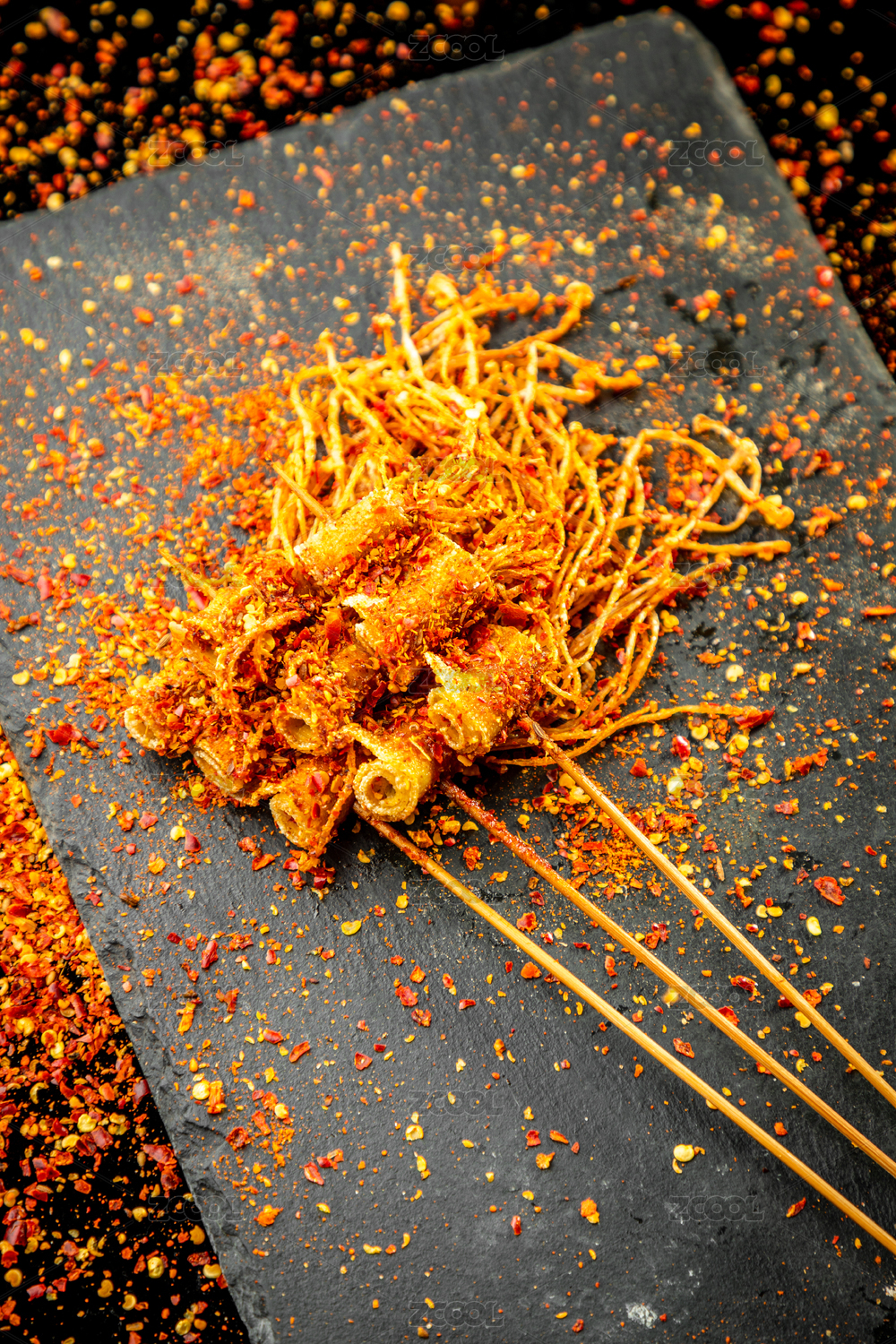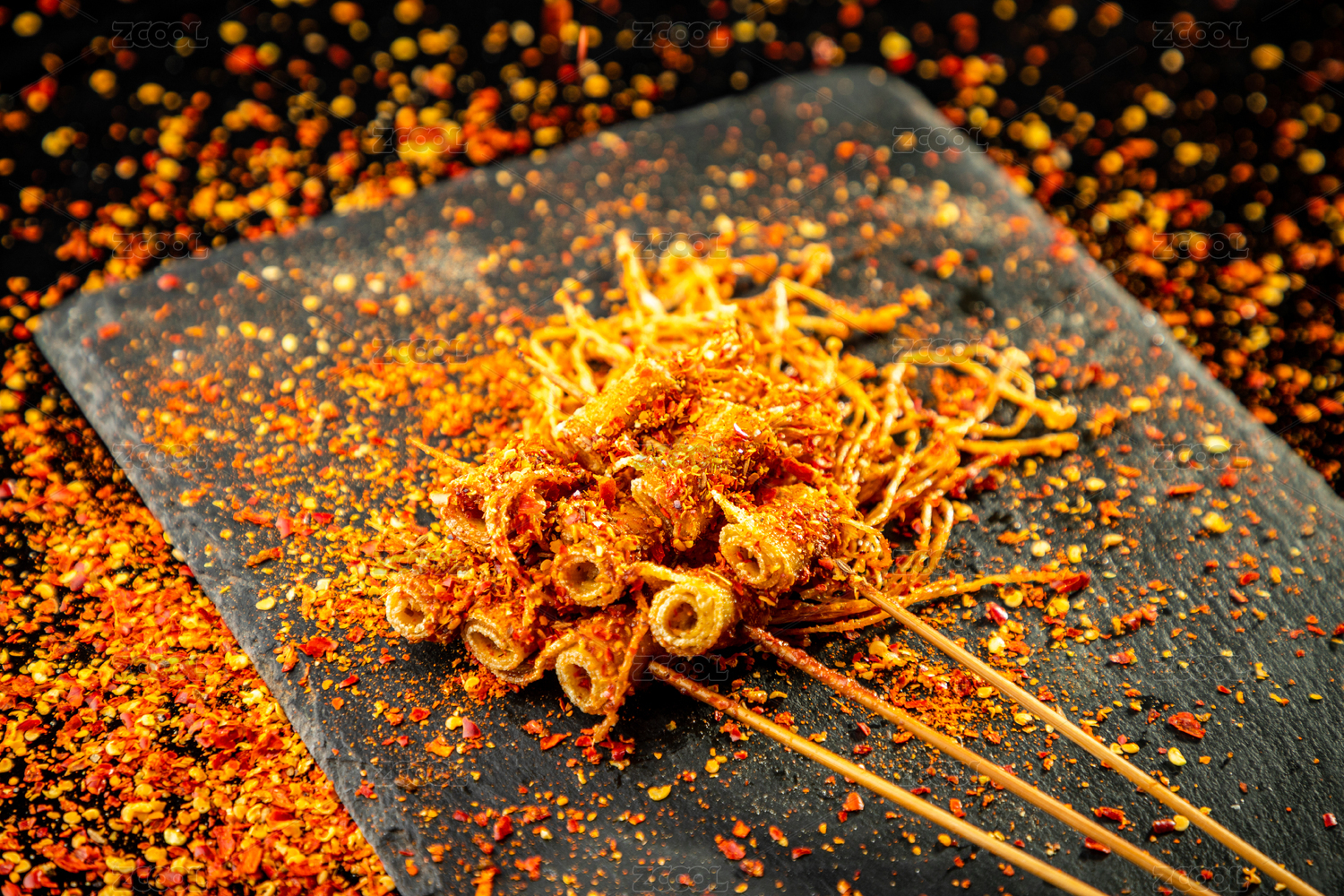 中國(guó)特色小吃美食醬汁烤串炸串食材插畫