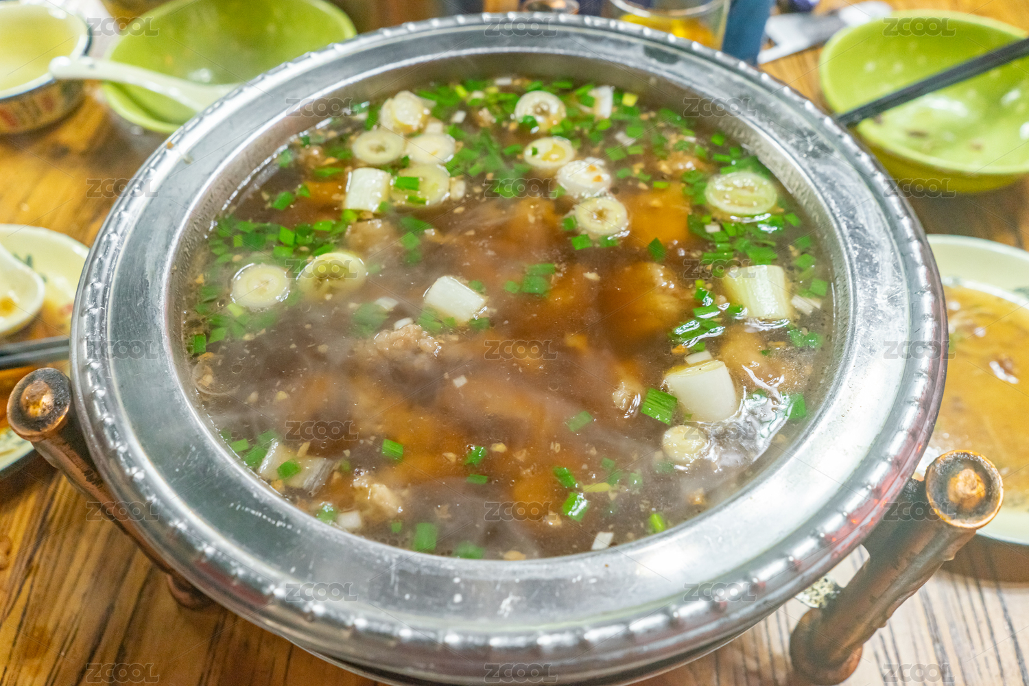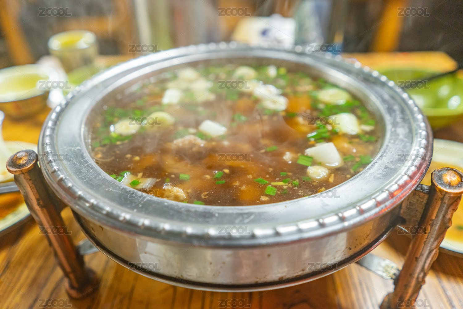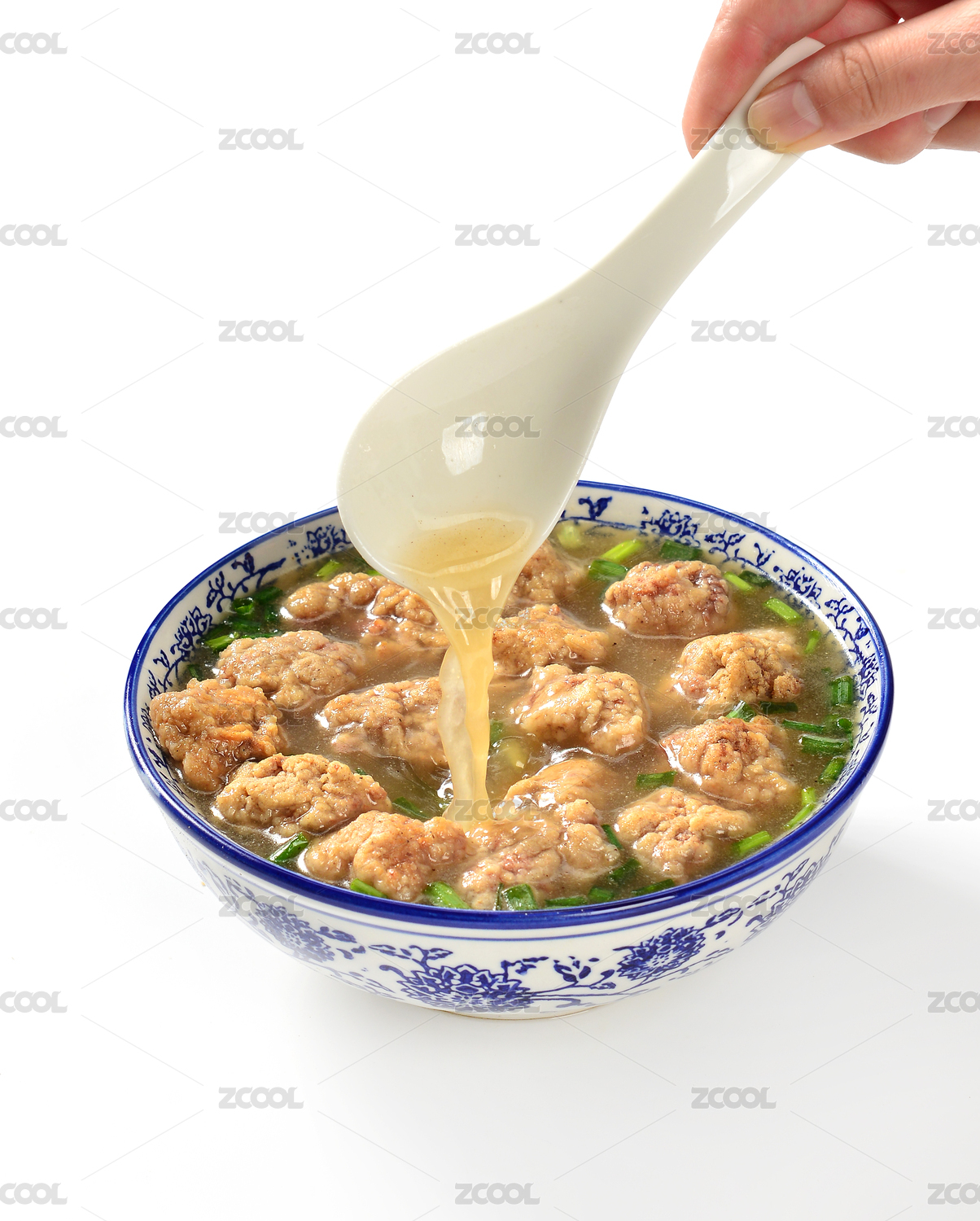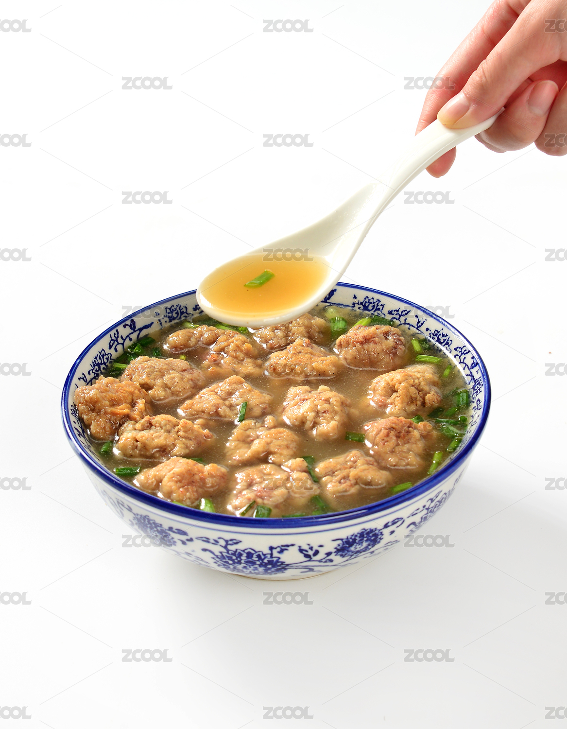 復(fù)古背景上的蔬菜鮮肉丸子湯