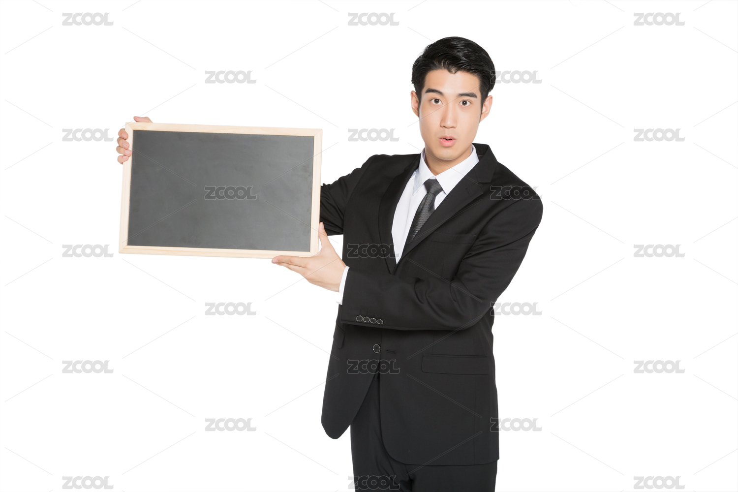 白色背景,男性的商務(wù)人士展示留白告示板