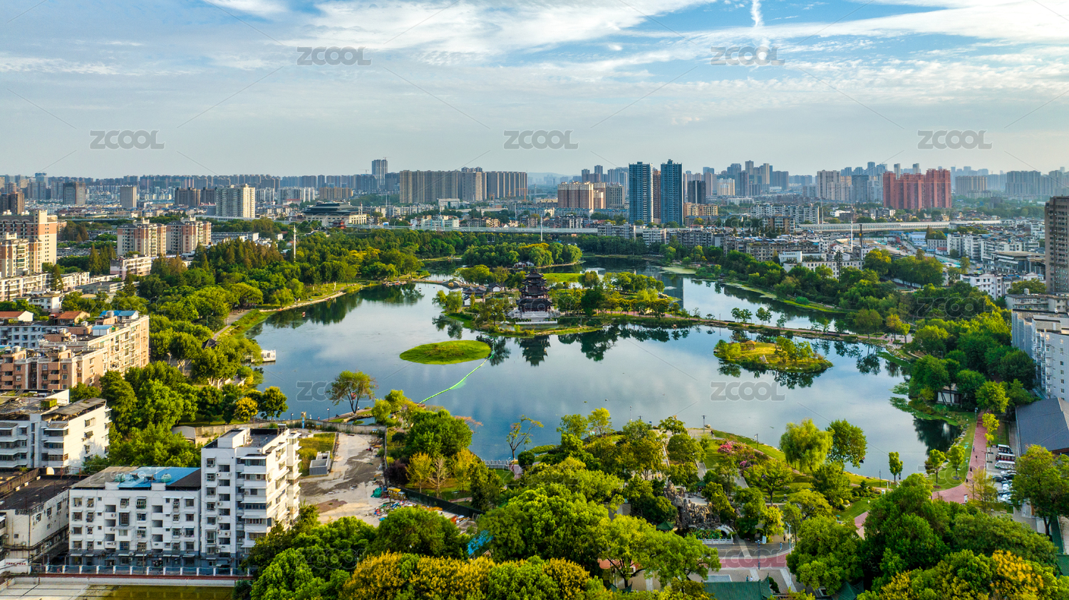 中國(guó)湖北武漢的紫陽(yáng)公園航拍