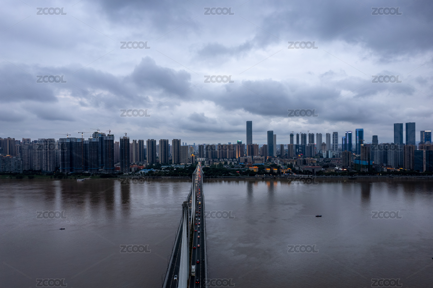 烏云密布長沙銀盆嶺大橋城市景觀